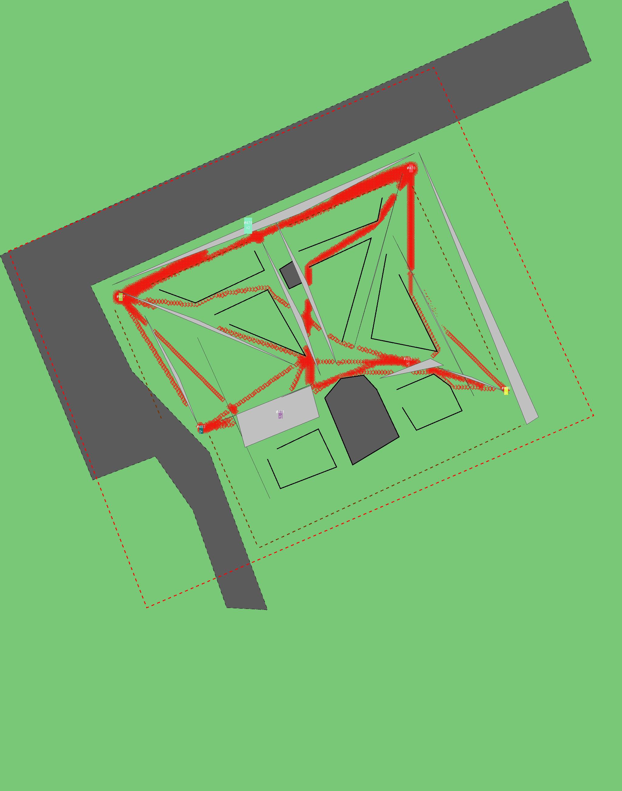 Красным цветом показаны места, где, вероятнее всего, появятся стихийные тропы..