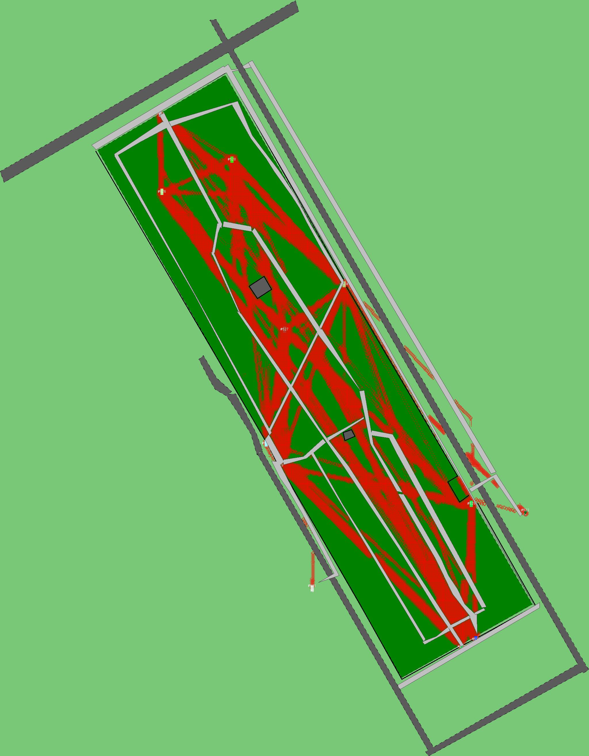 Красным цветом показаны места, где, вероятнее всего, появятся стихийные тропы..
