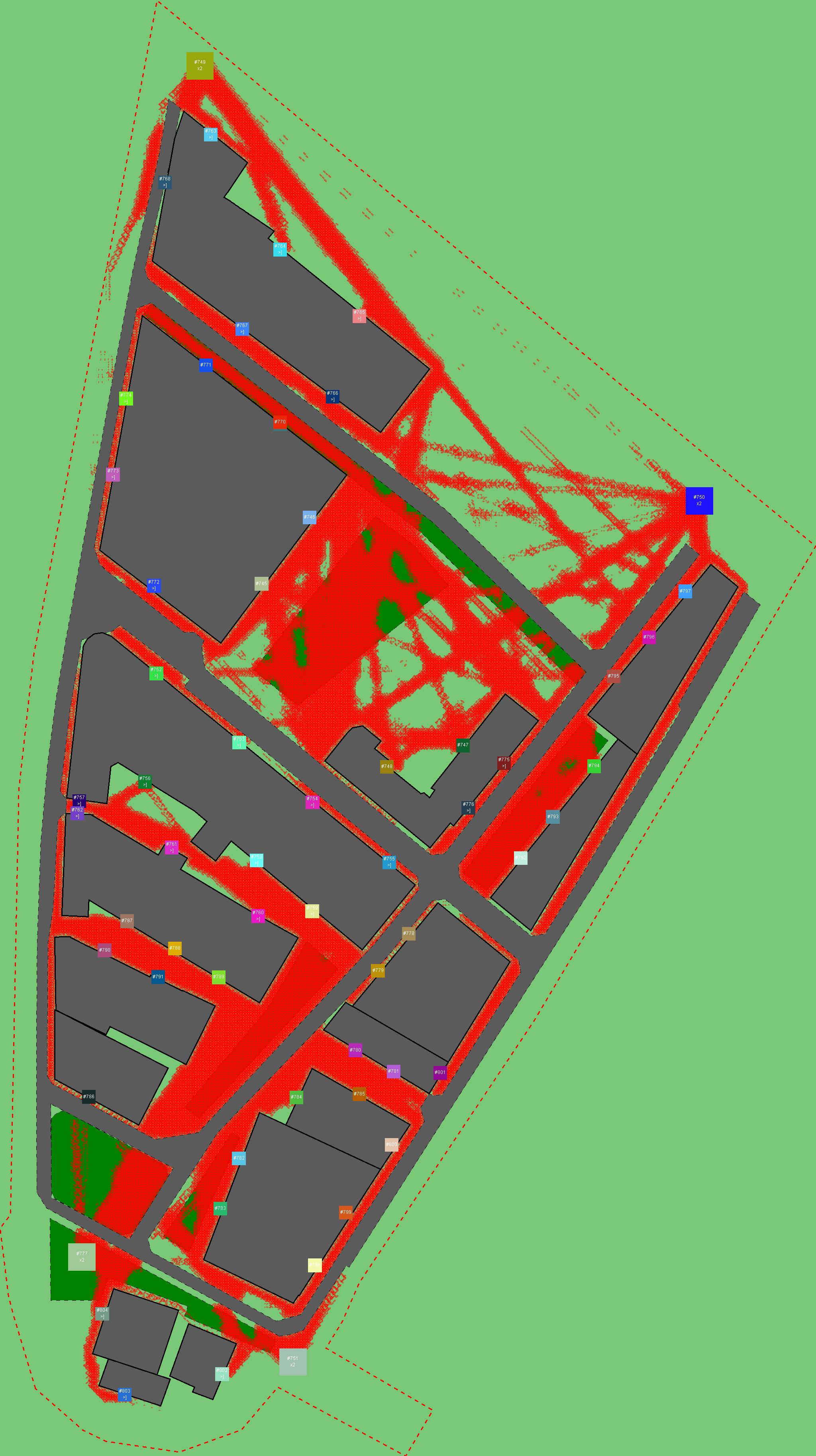 Красным цветом показаны места, где, вероятнее всего, появятся стихийные тропы..