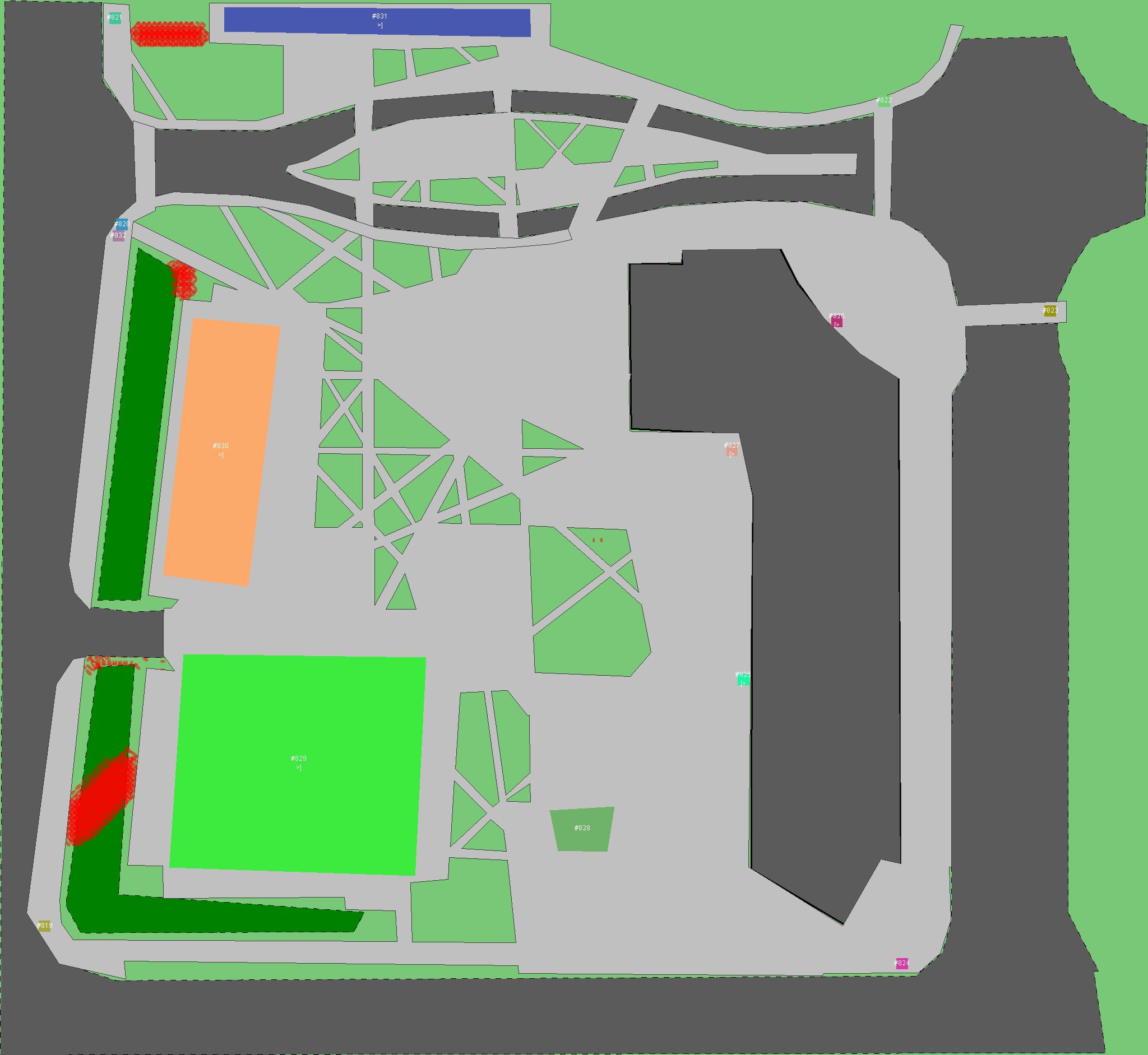 Красным цветом показаны места, где, вероятнее всего, появятся стихийные тропы..