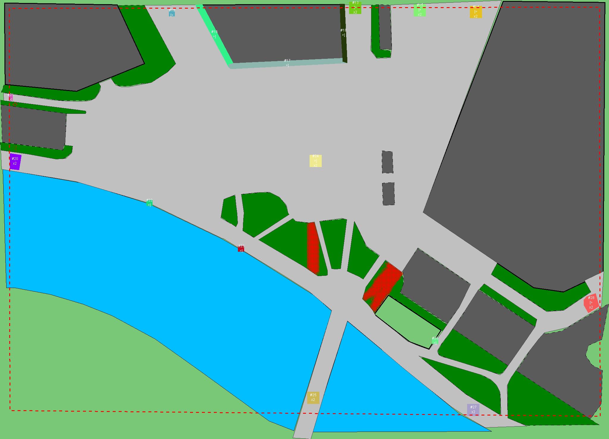 Красным цветом показаны места, где, вероятнее всего, появятся стихийные тропы..
