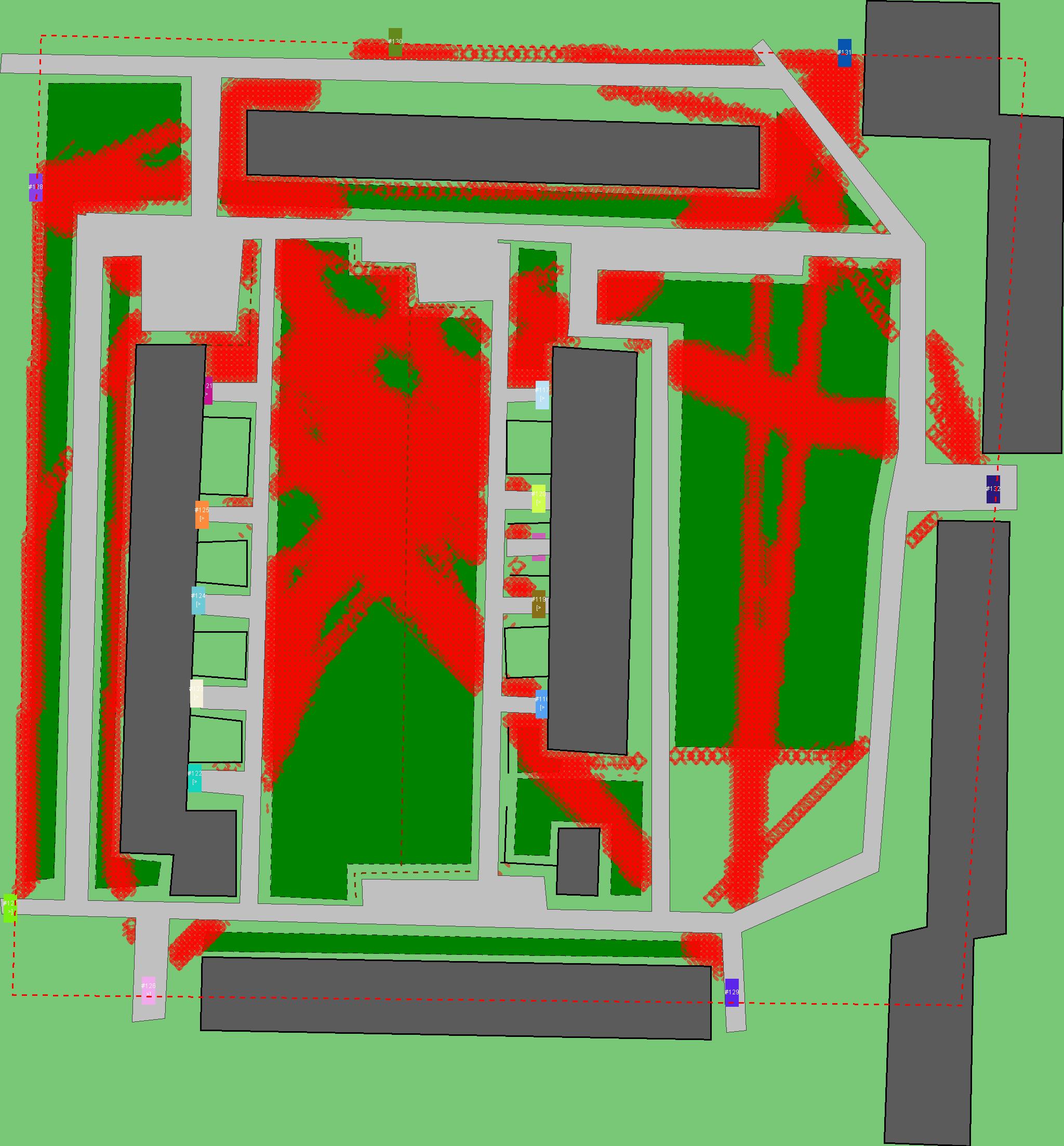 Красным цветом показаны места, где, вероятнее всего, появятся стихийные тропы..