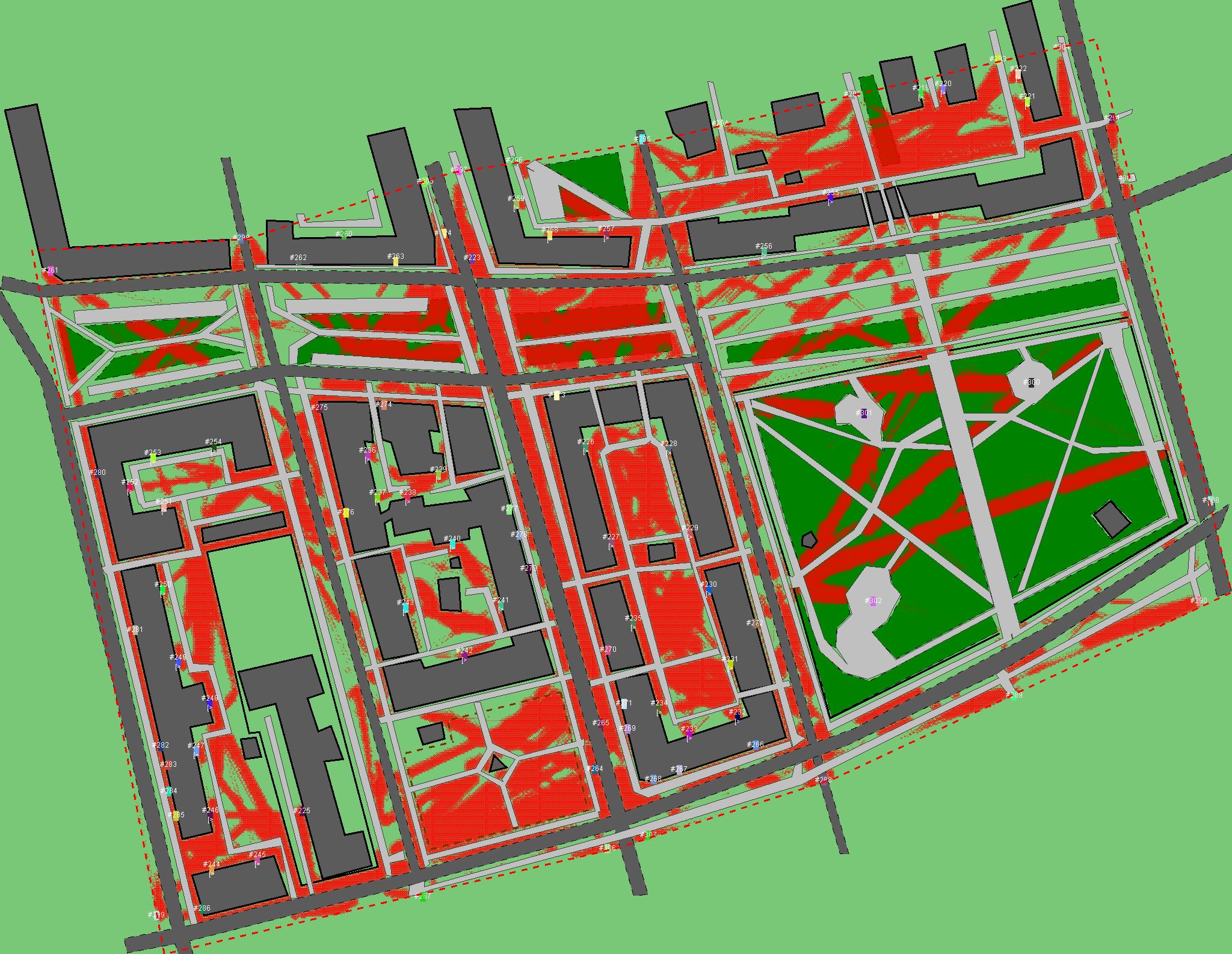Красным цветом показаны места, где, вероятнее всего, появятся стихийные тропы..