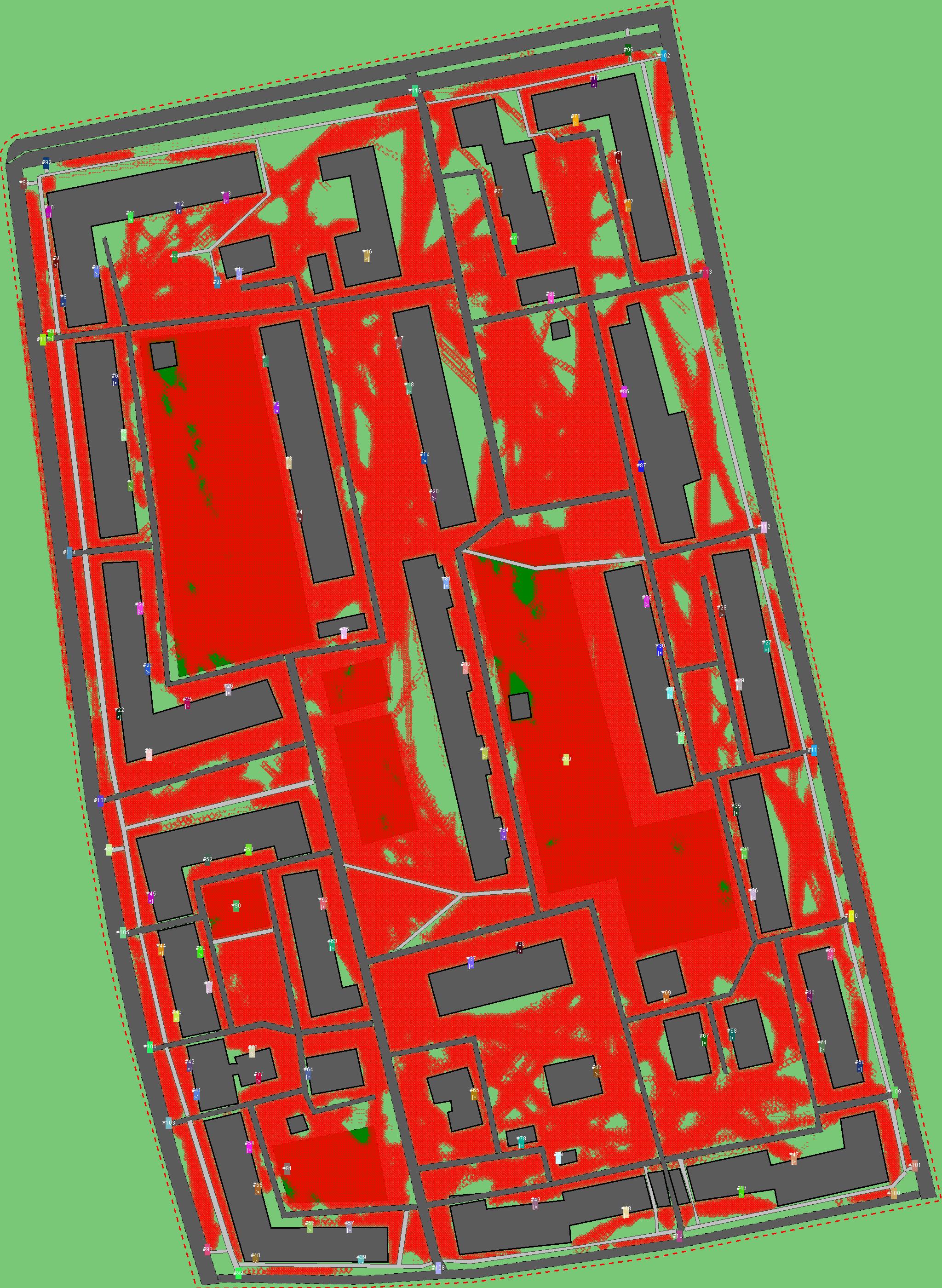 Красным цветом показаны места, где, вероятнее всего, появятся стихийные тропы..