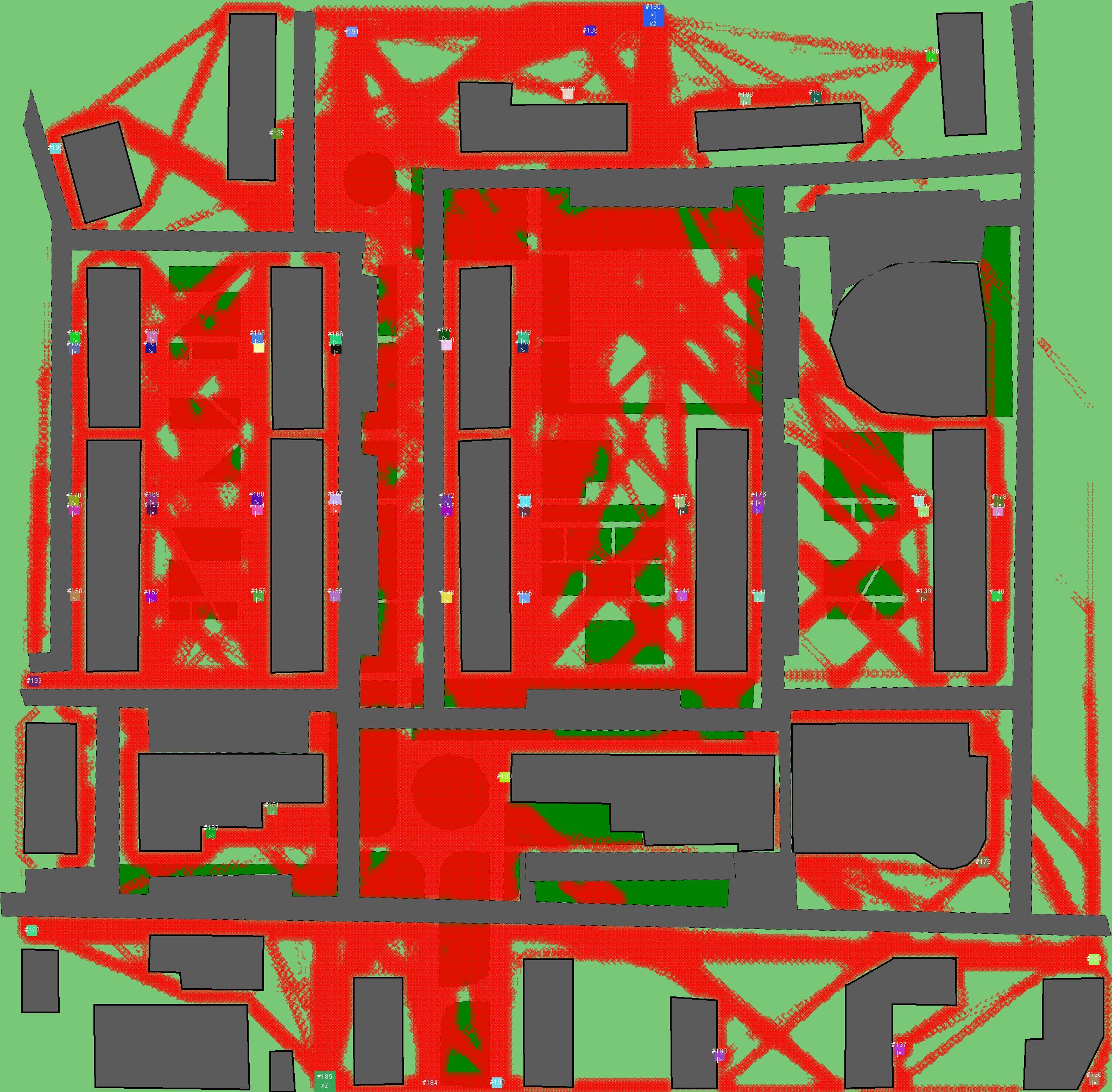 Красным цветом показаны места, где, вероятнее всего, появятся стихийные тропы..