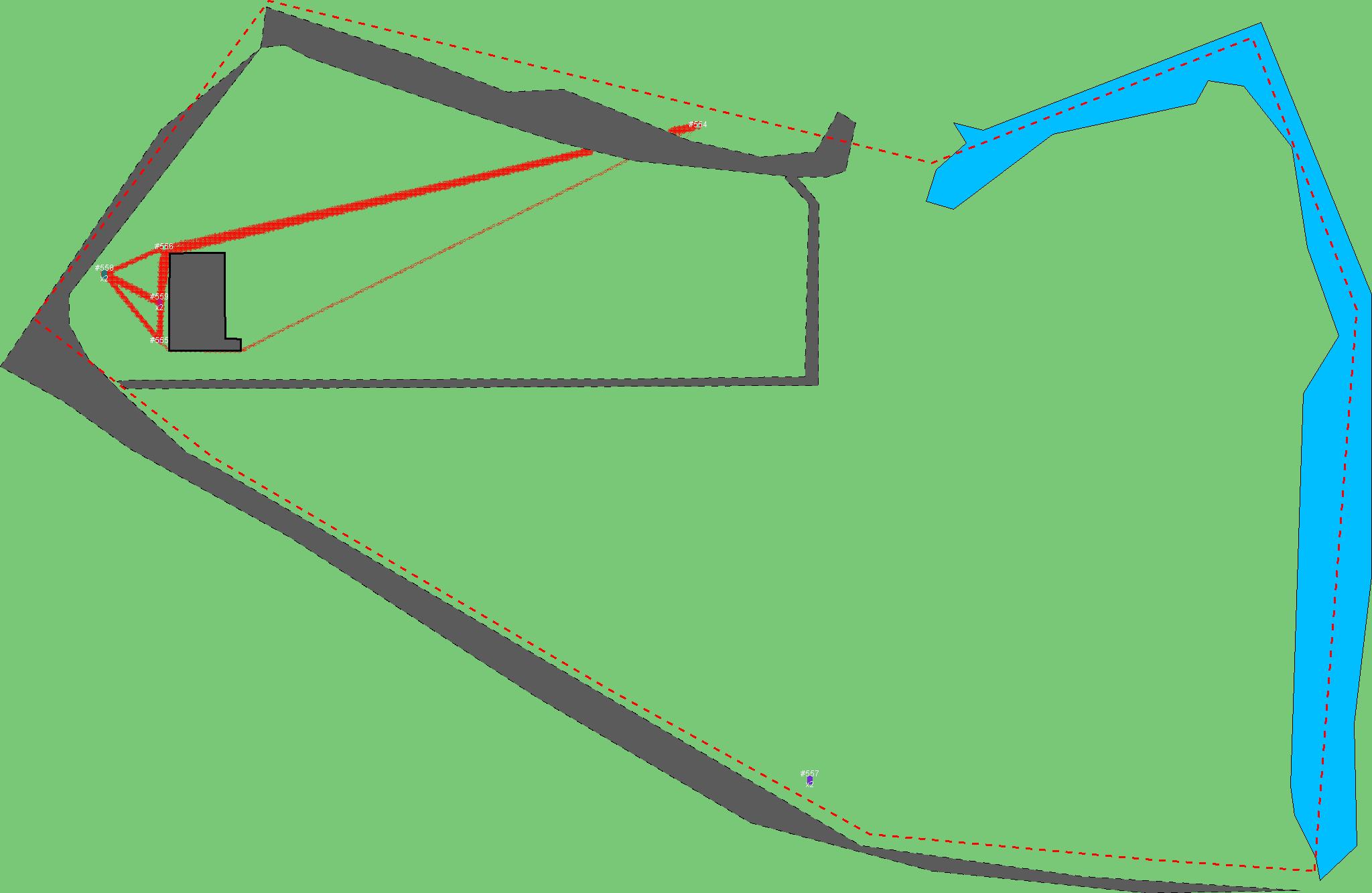 Красным цветом показаны места, где, вероятнее всего, появятся стихийные тропы..