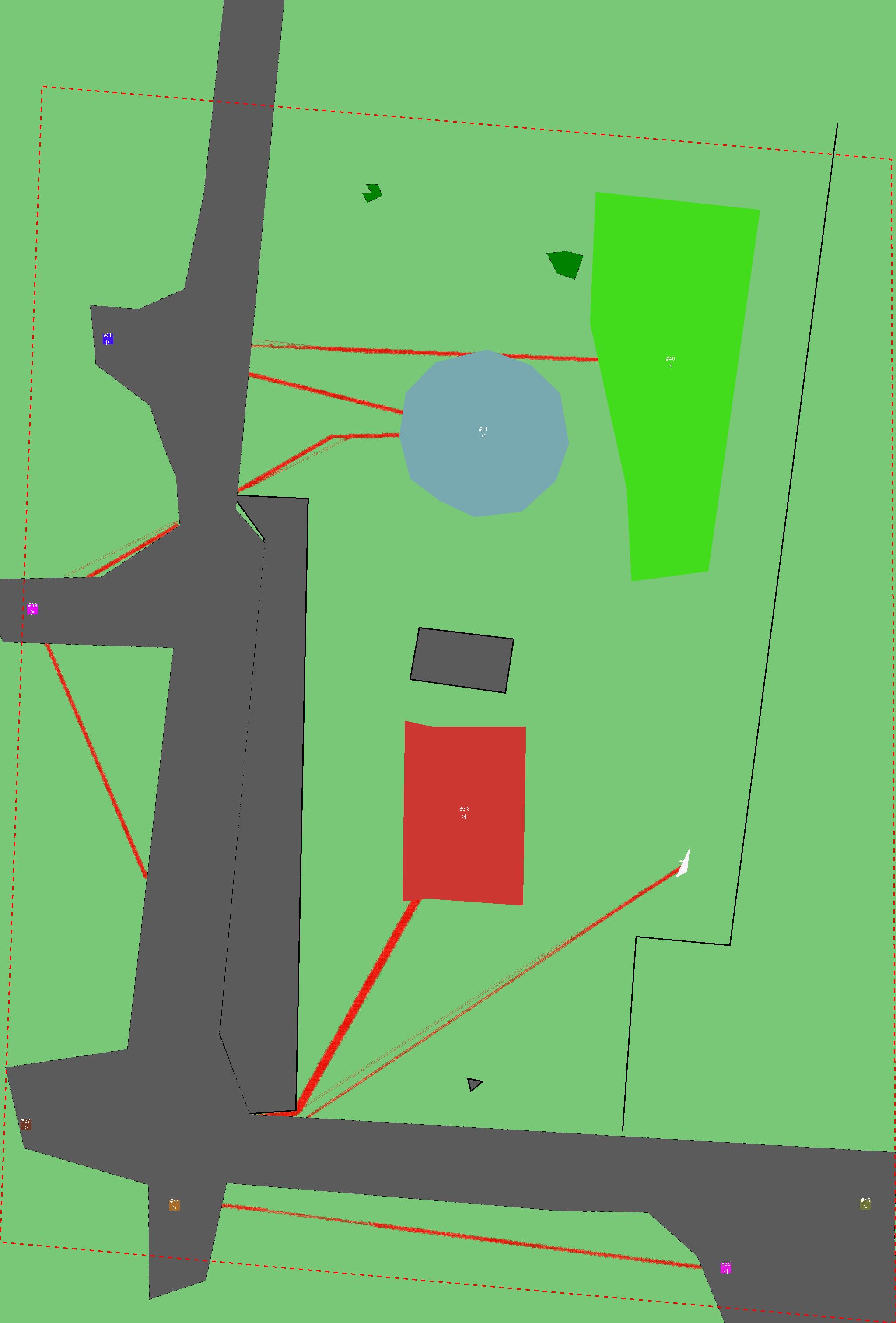 Красным цветом показаны места, где, вероятнее всего, появятся стихийные тропы..