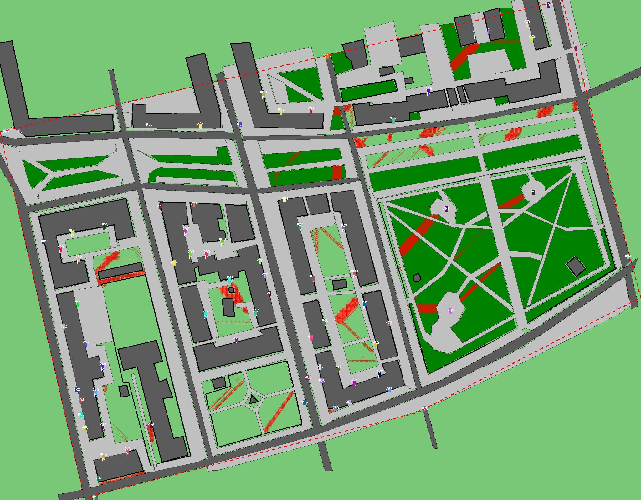 Красным цветом показаны места, где, вероятнее всего, появятся стихийные тропы..