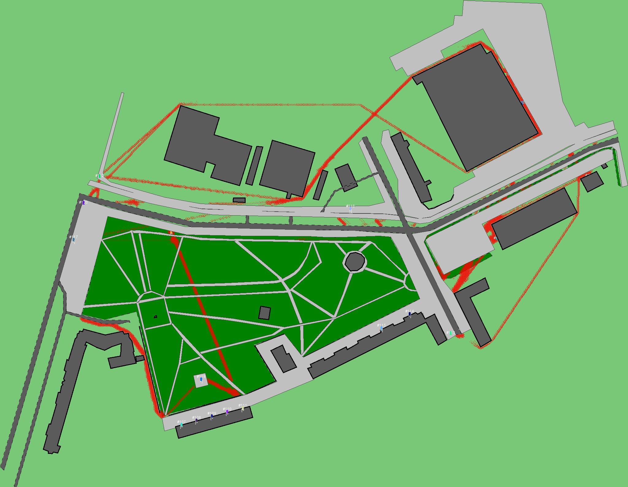 Красным цветом показаны места, где, вероятнее всего, появятся стихийные тропы..