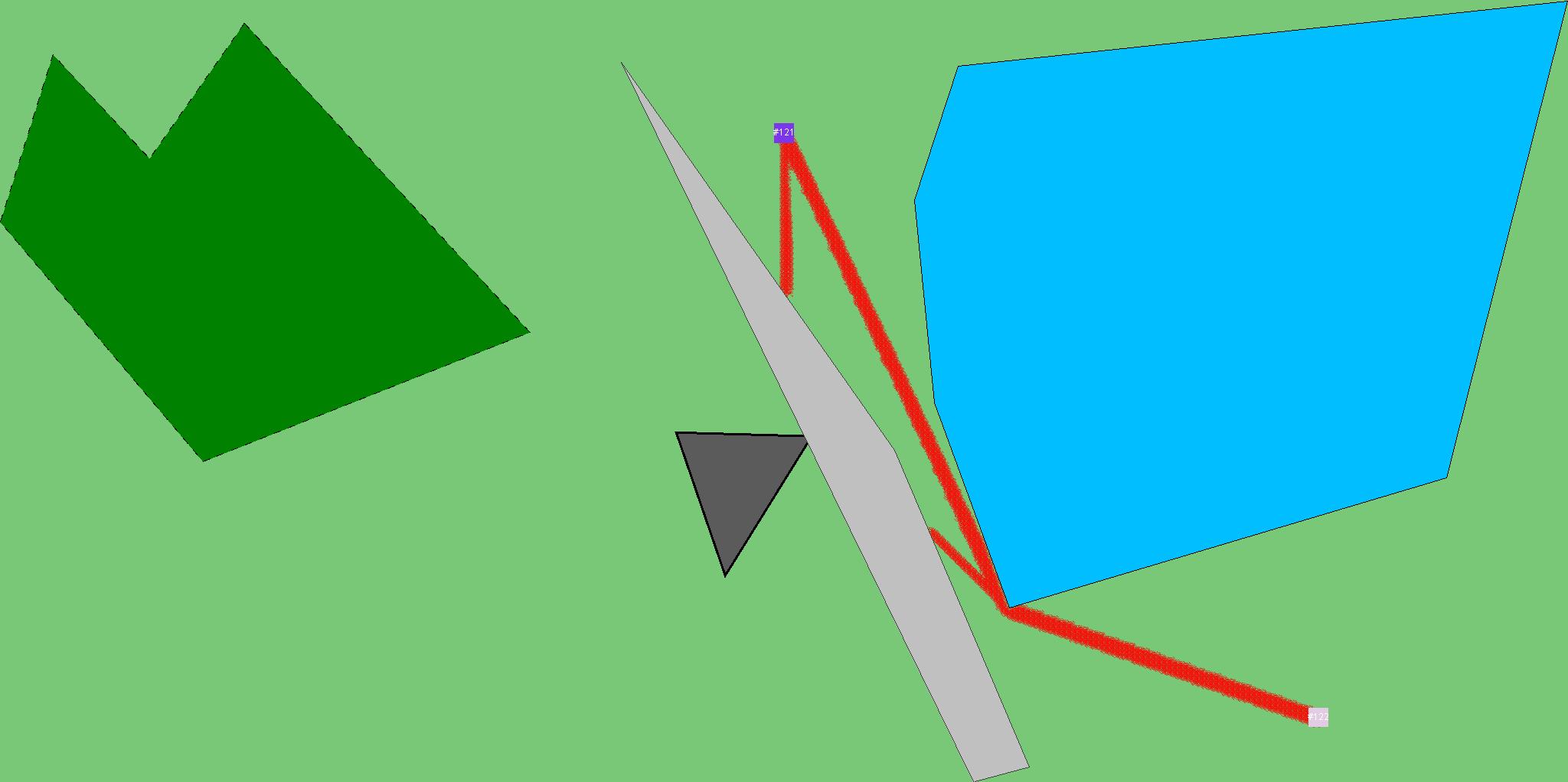 Красным цветом показаны места, где, вероятнее всего, появятся стихийные тропы..