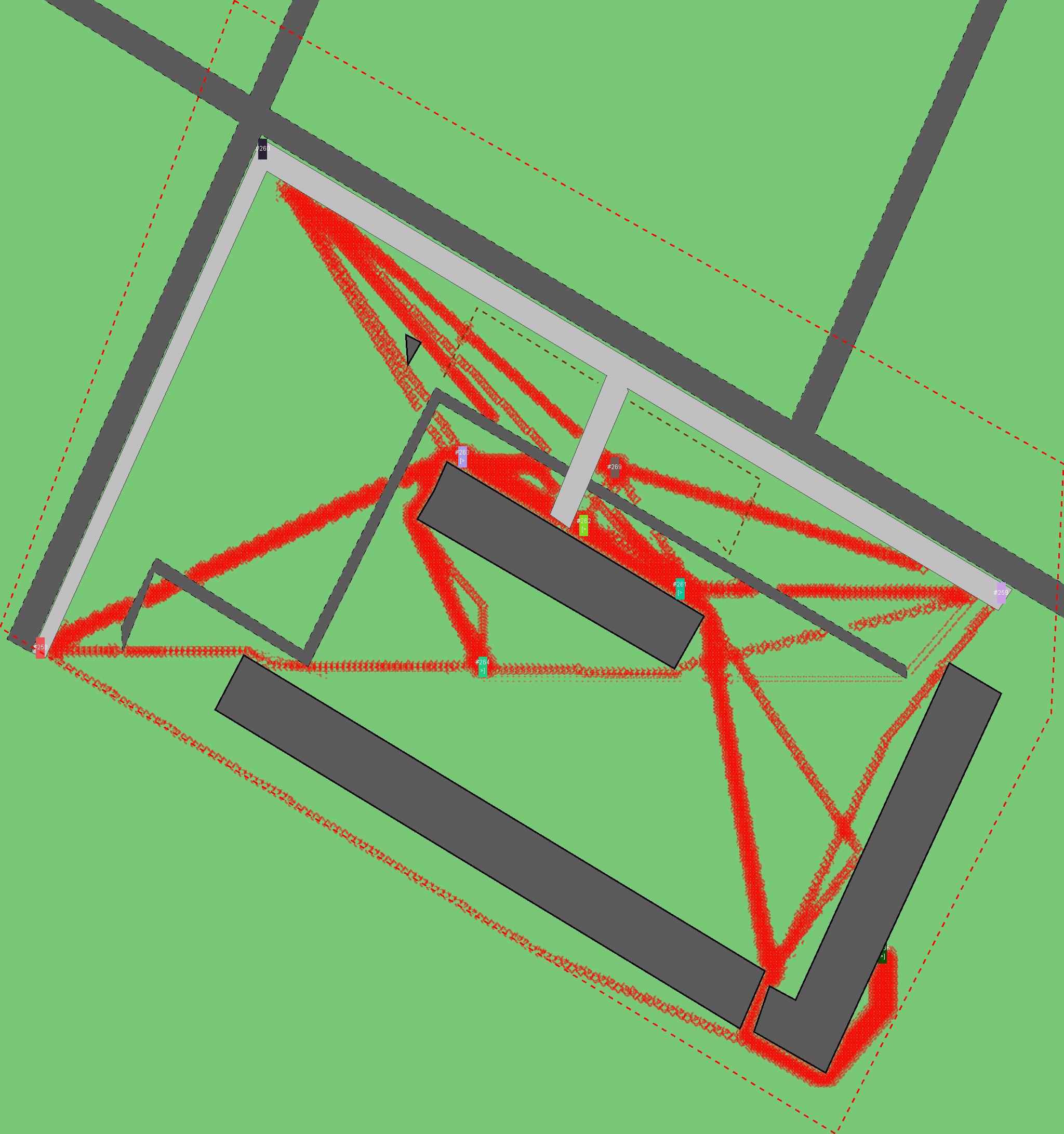 Красным цветом показаны места, где, вероятнее всего, появятся стихийные тропы..