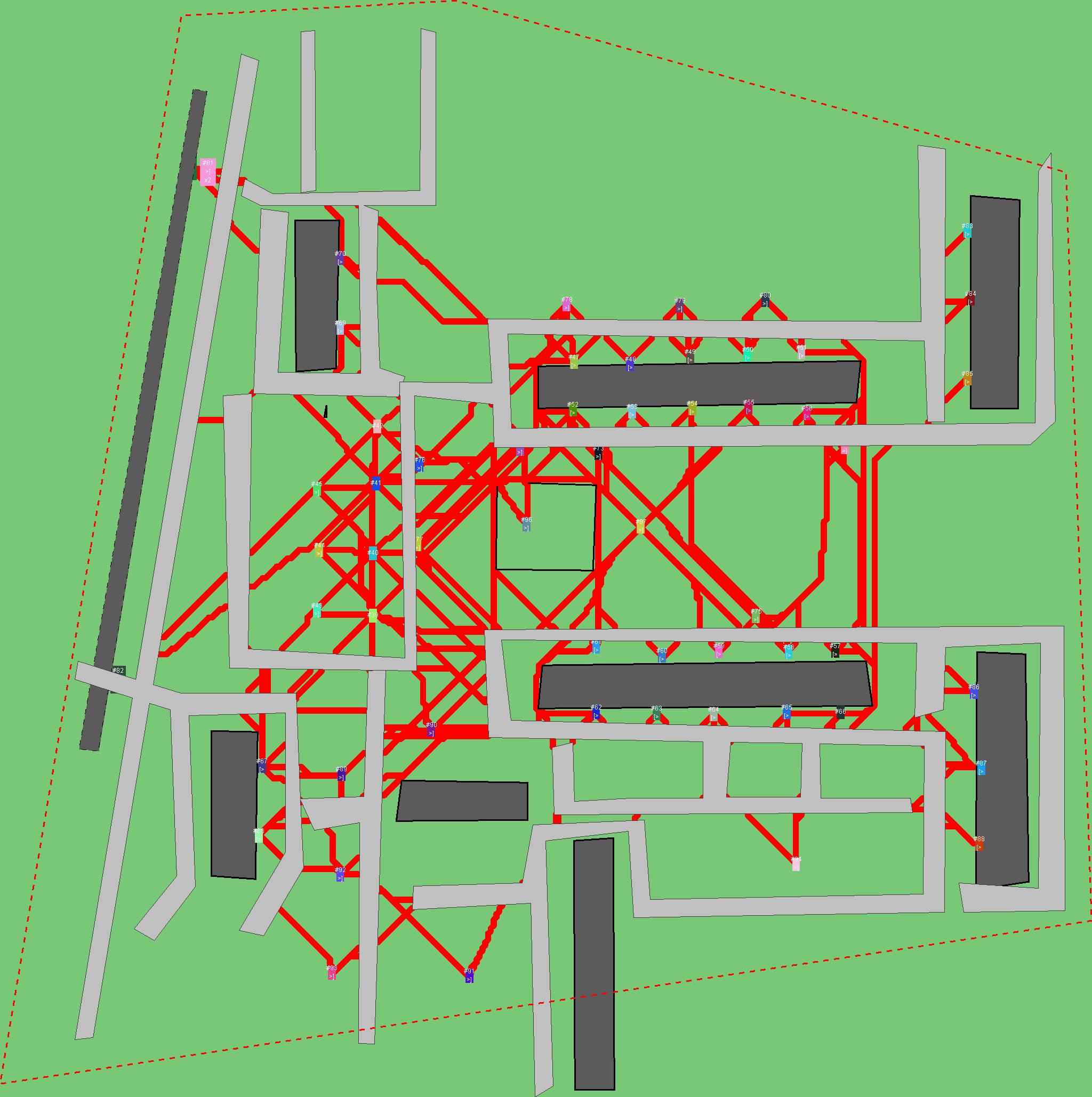 Красным цветом показаны места, где, вероятнее всего, появятся стихийные тропы..