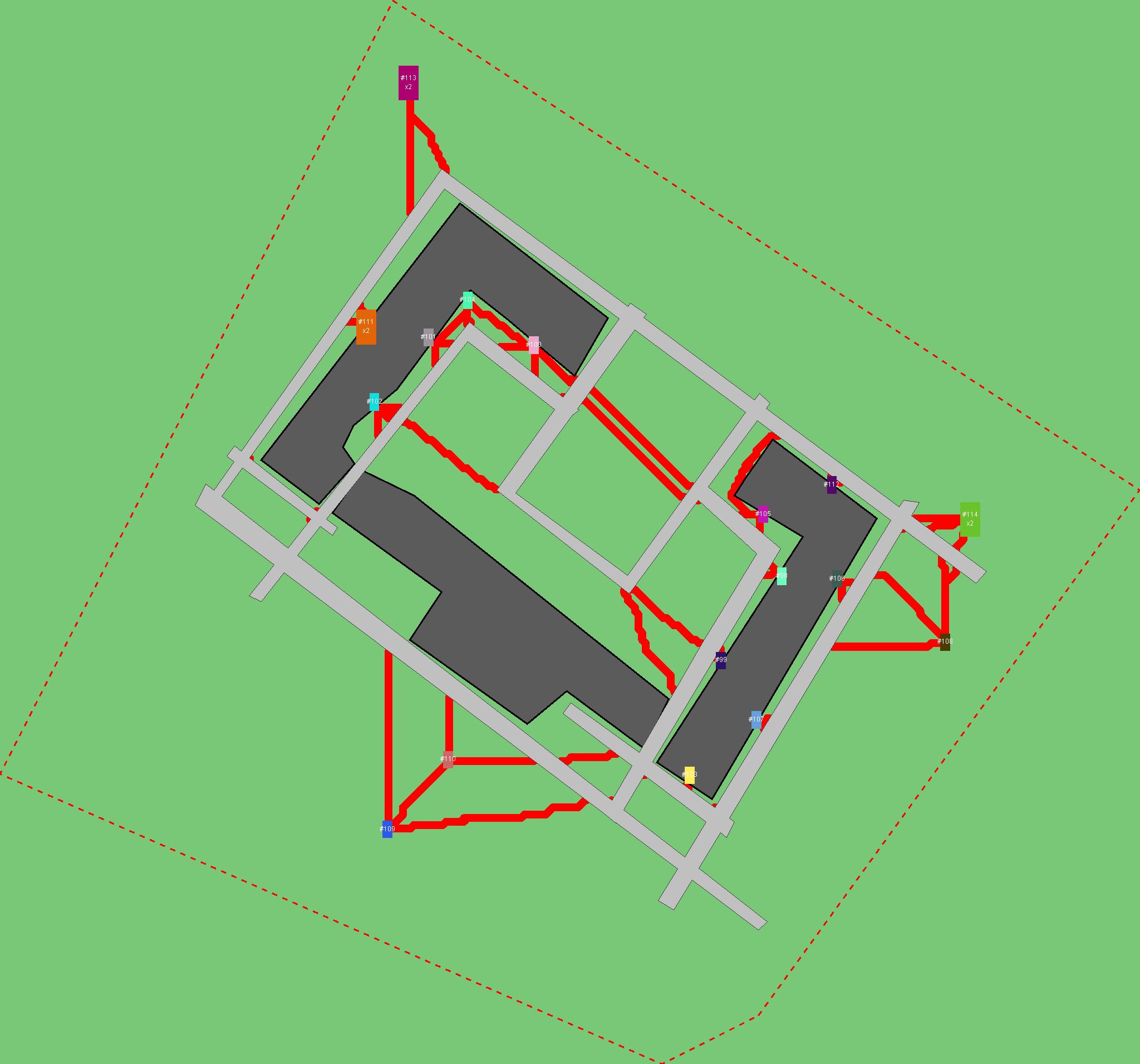 Красным цветом показаны места, где, вероятнее всего, появятся стихийные тропы..