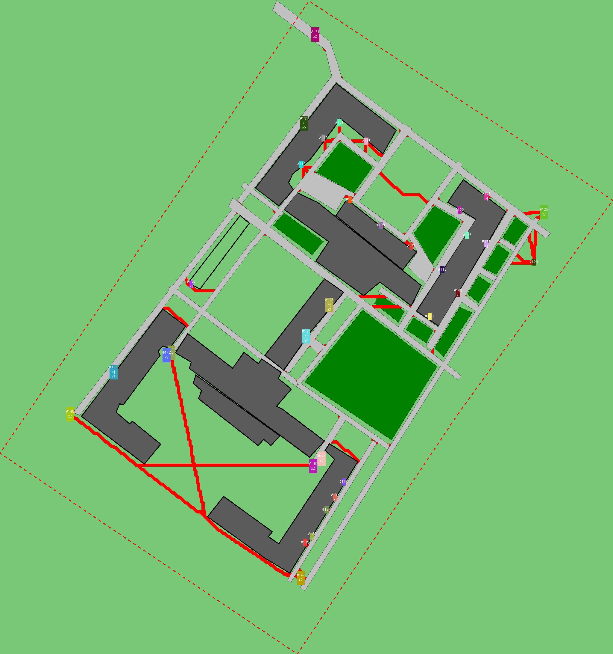 Красным цветом показаны места, где, вероятнее всего, появятся стихийные тропы..