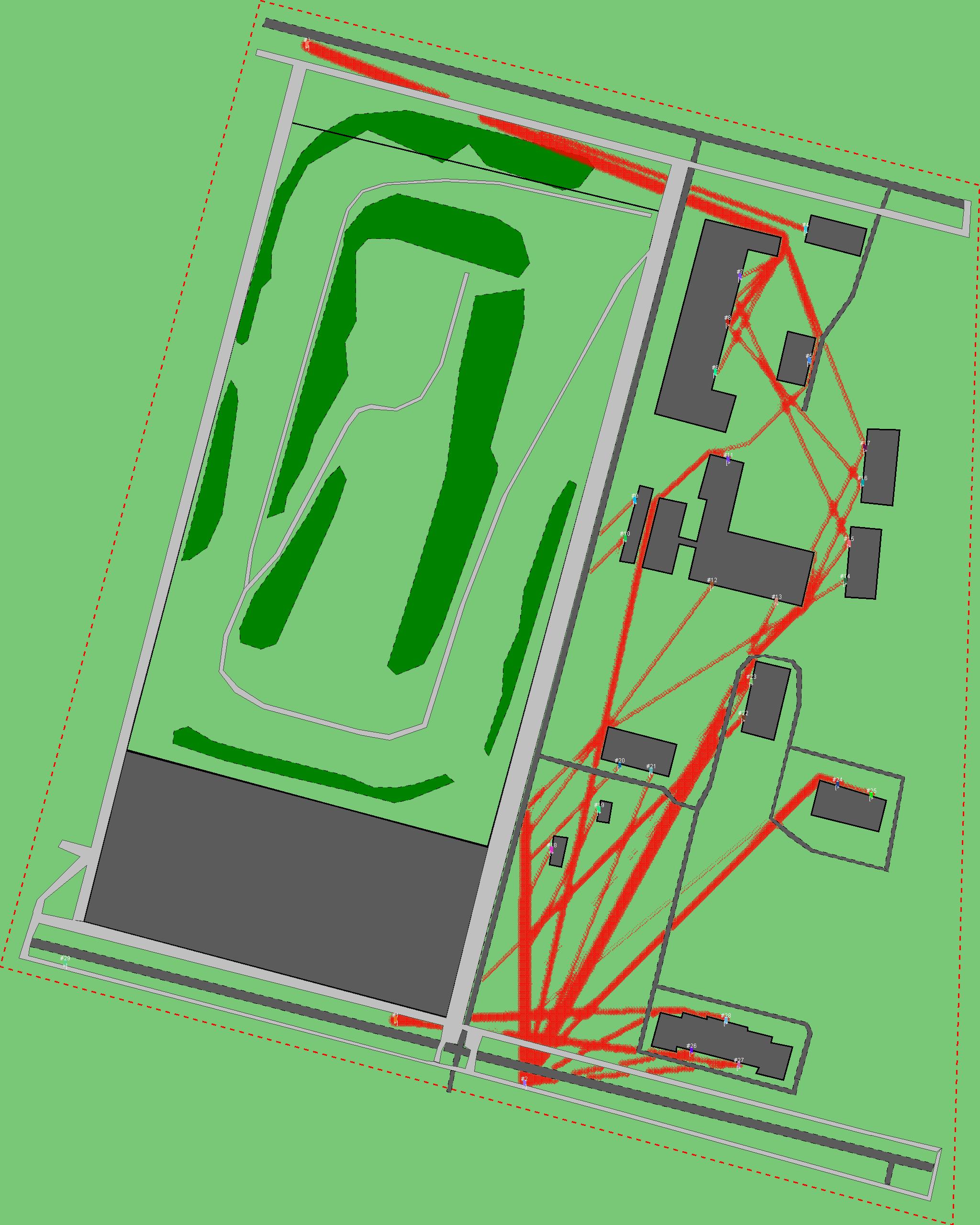 Красным цветом показаны места, где, вероятнее всего, появятся стихийные тропы..