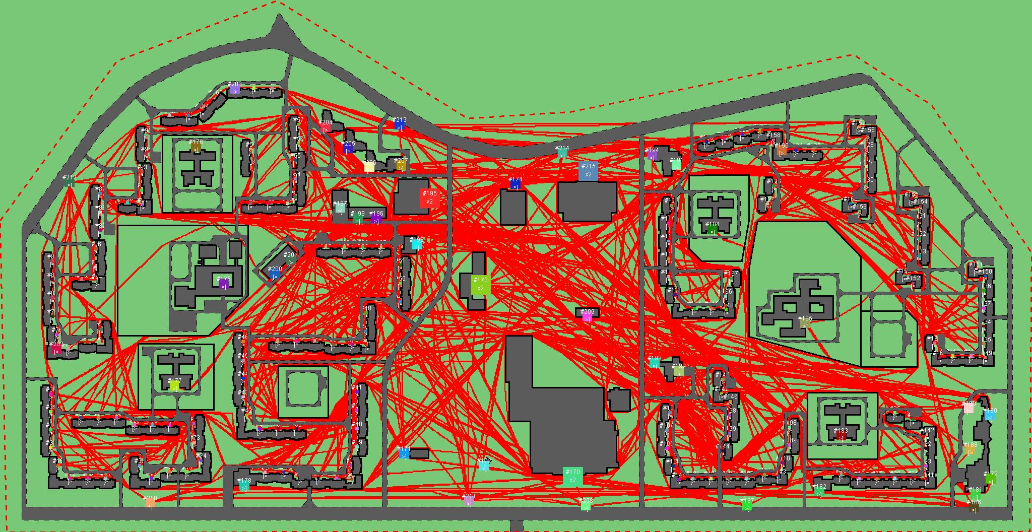 Красным цветом показаны места, где, вероятнее всего, появятся стихийные тропы..