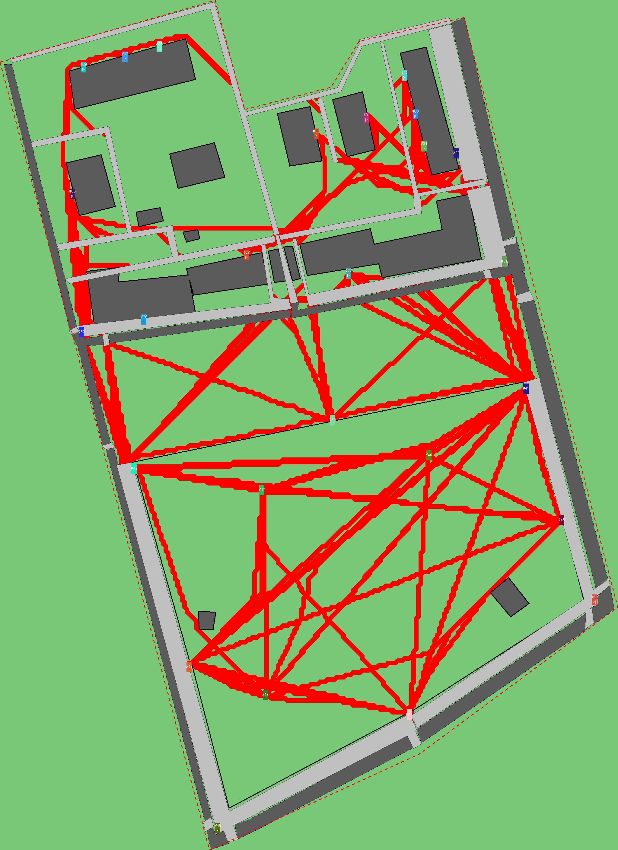 Красным цветом показаны места, где, вероятнее всего, появятся стихийные тропы..