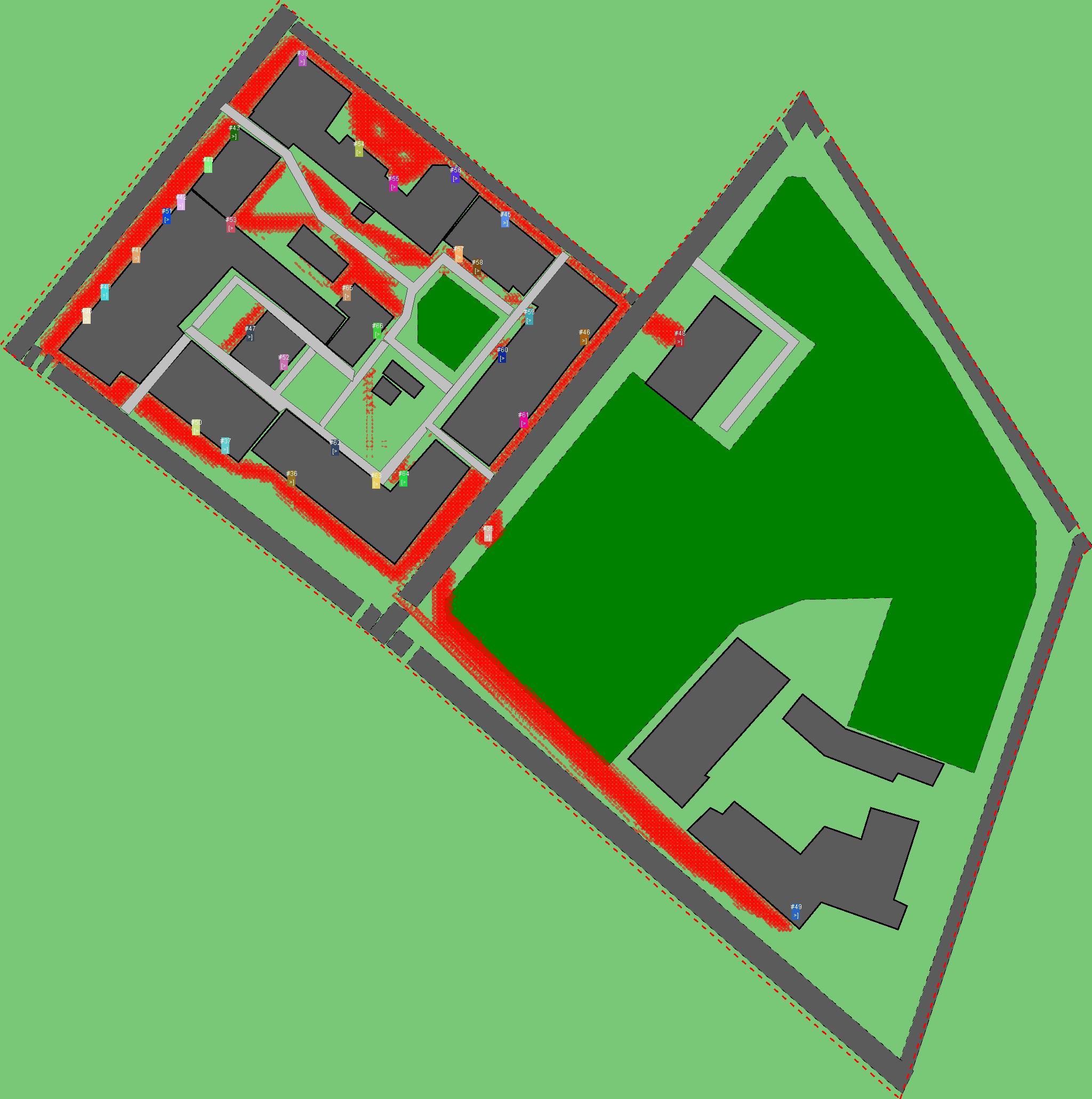 Красным цветом показаны места, где, вероятнее всего, появятся стихийные тропы..