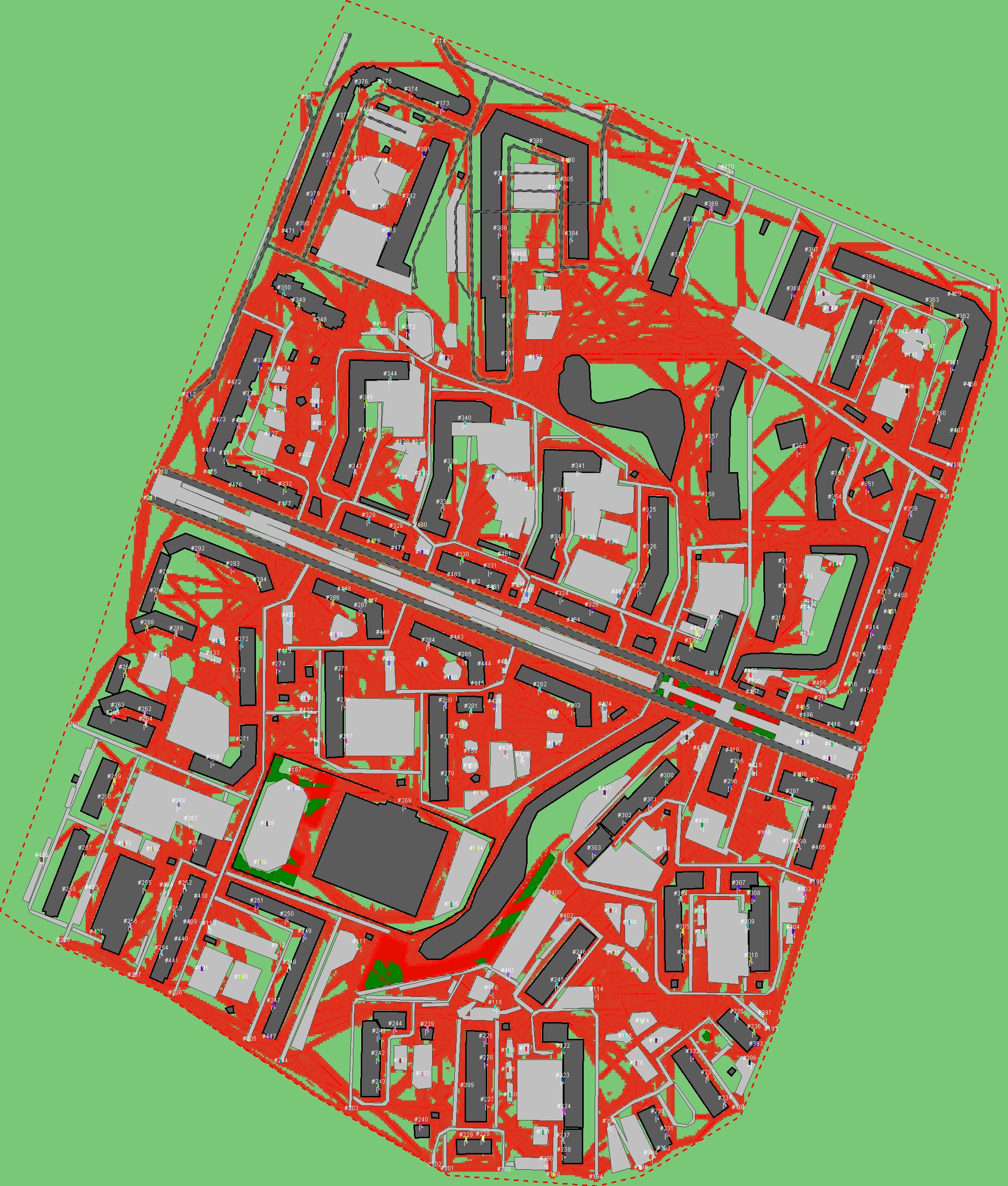 Красным цветом показаны места, где, вероятнее всего, появятся стихийные тропы..