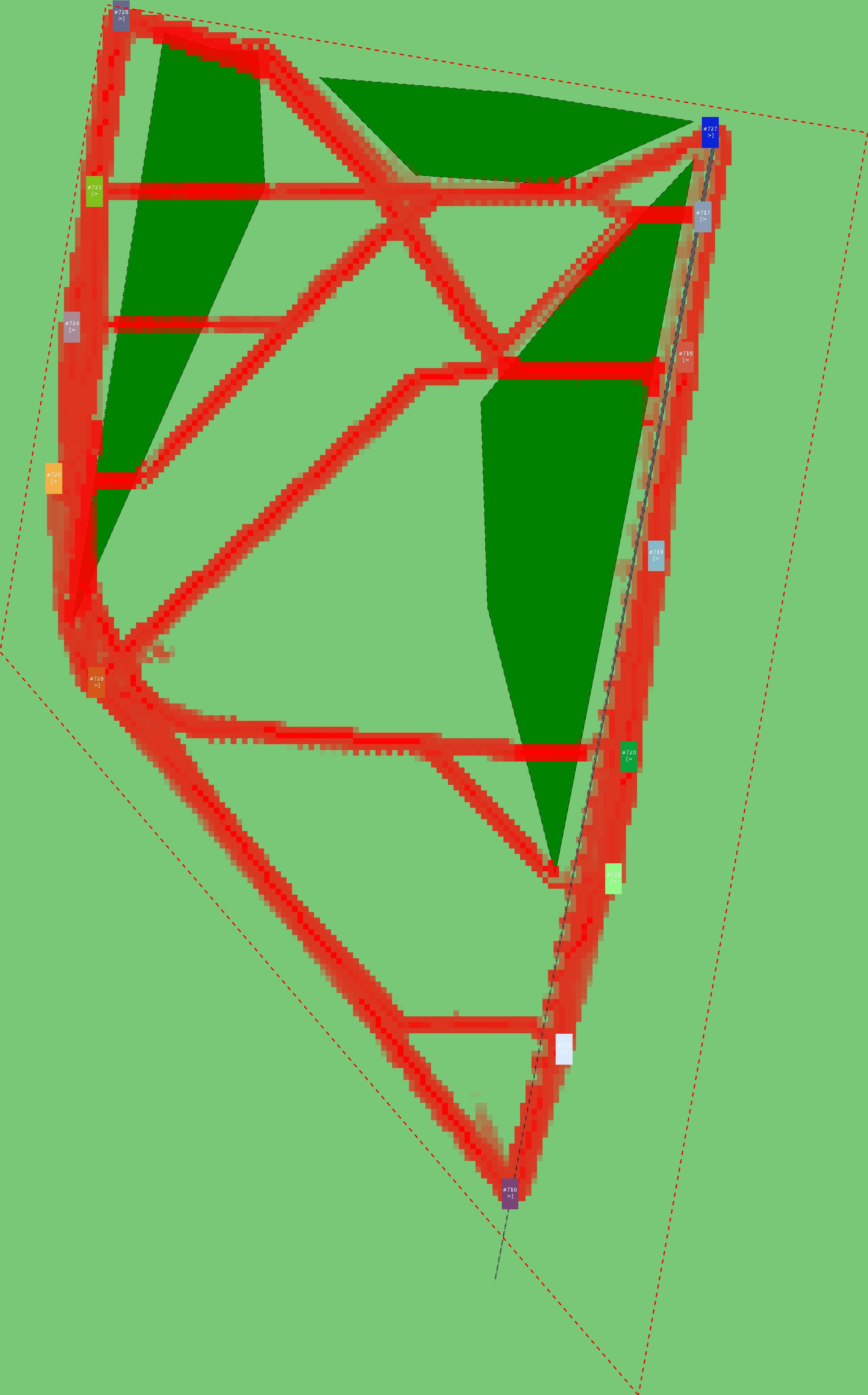Красным цветом показаны места, где, вероятнее всего, появятся стихийные тропы..