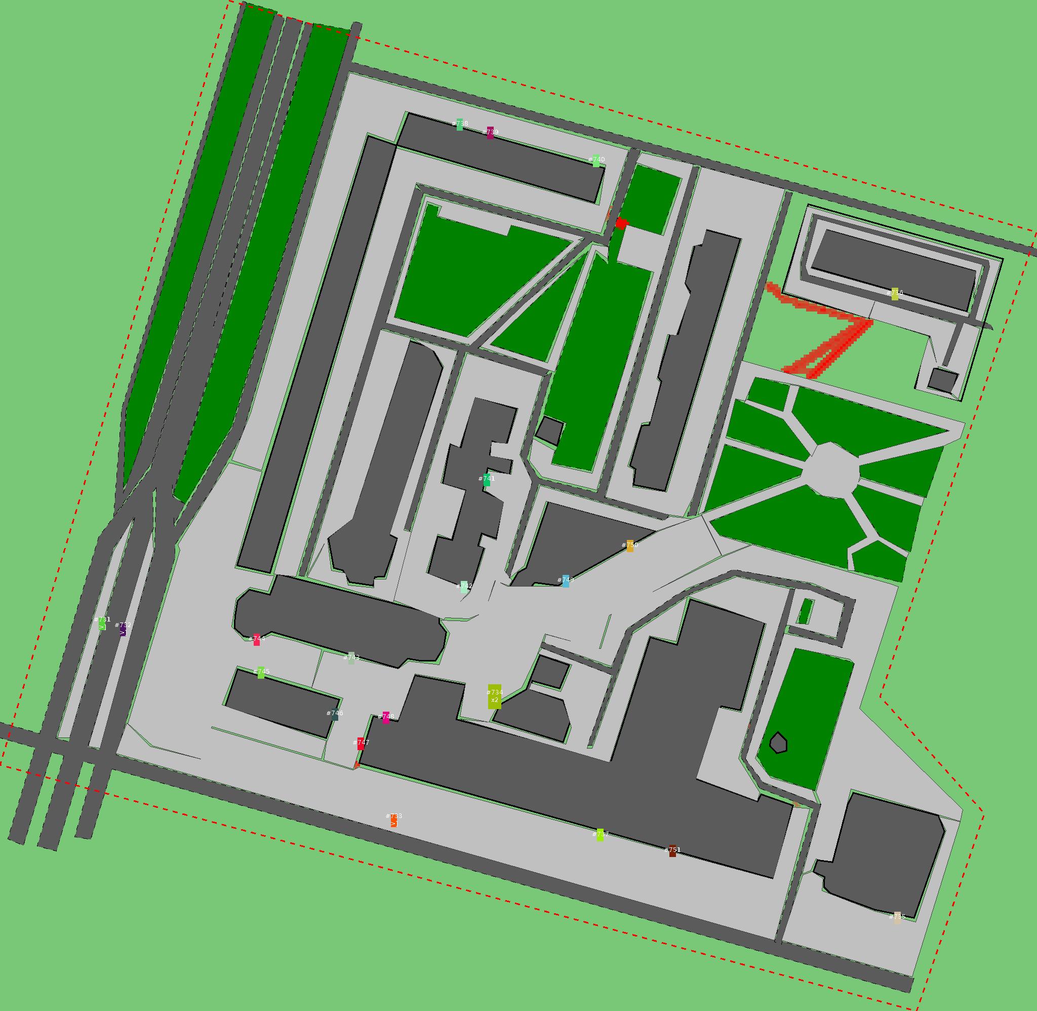 Красным цветом показаны места, где, вероятнее всего, появятся стихийные тропы..