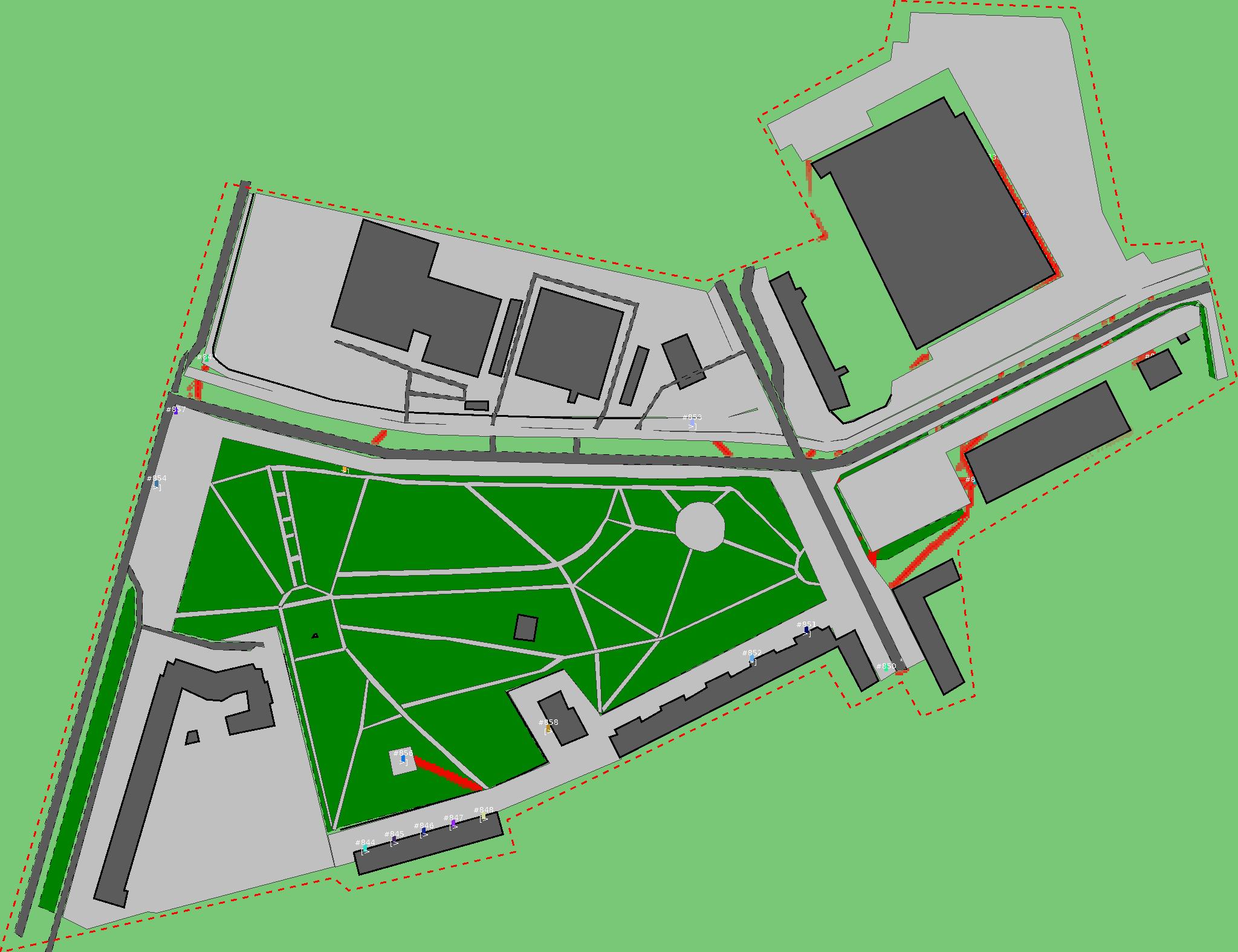 Красным цветом показаны места, где, вероятнее всего, появятся стихийные тропы..