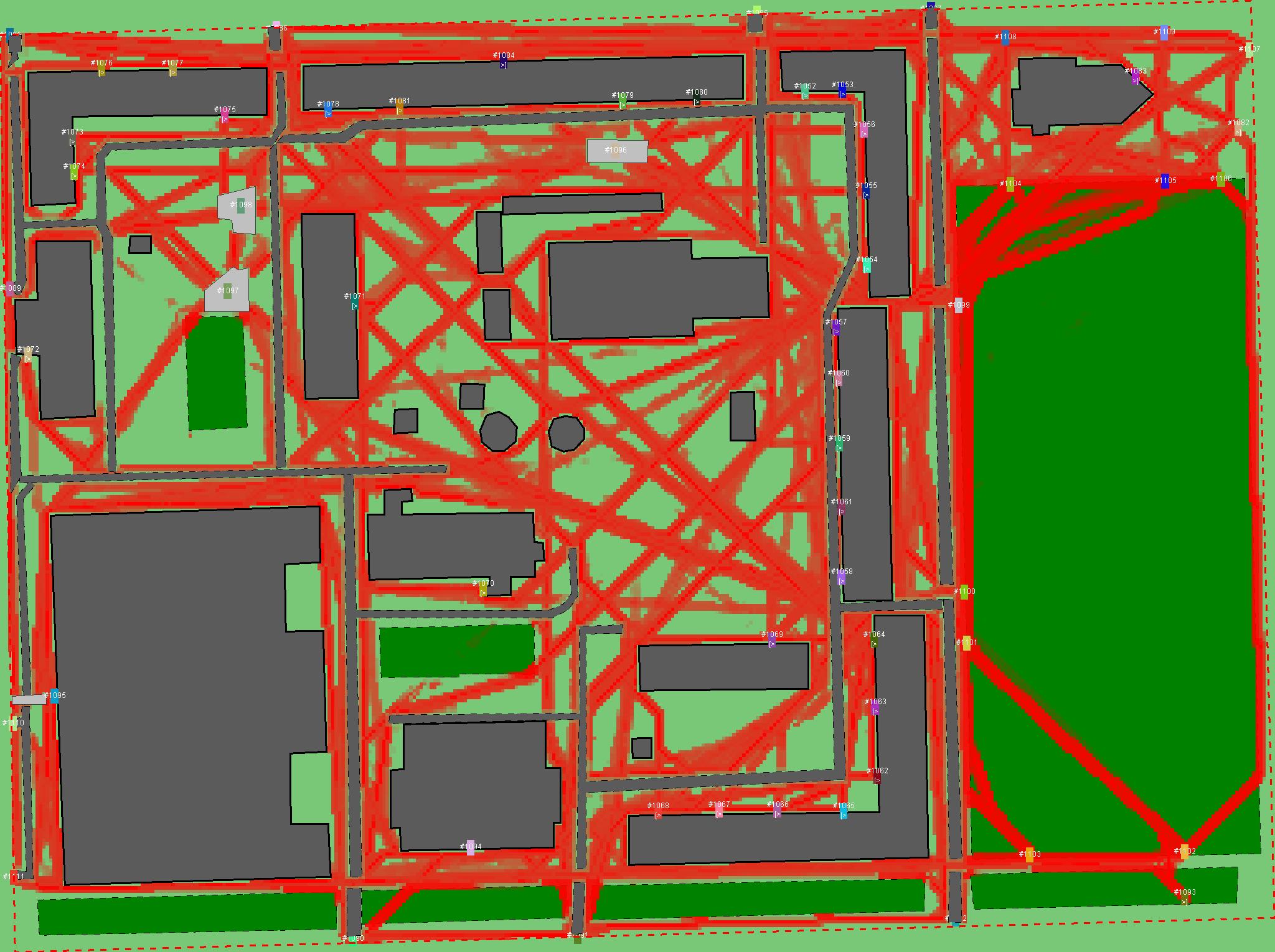 Красным цветом показаны места, где, вероятнее всего, появятся стихийные тропы..