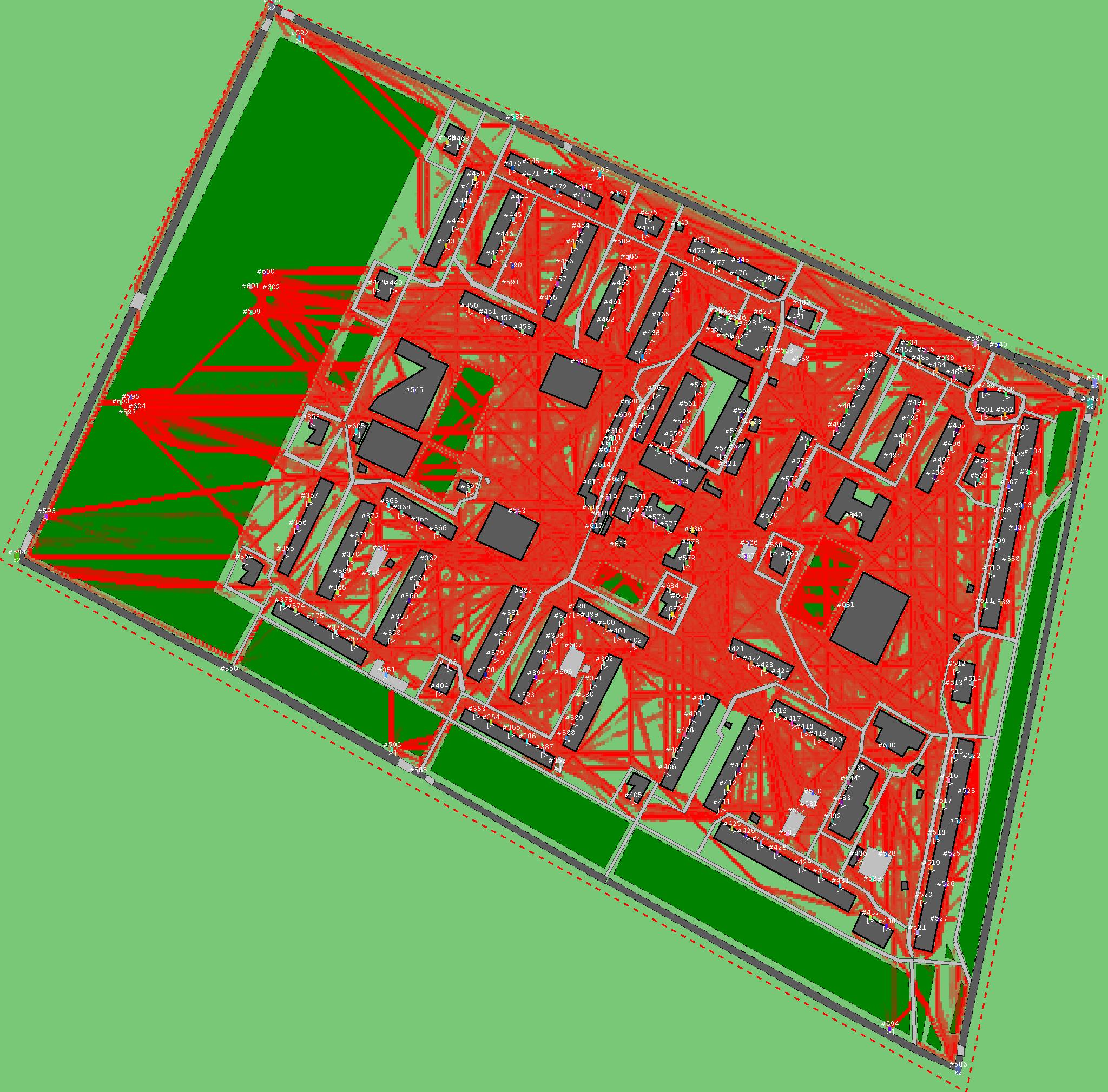 Красным цветом показаны места, где, вероятнее всего, появятся стихийные тропы..