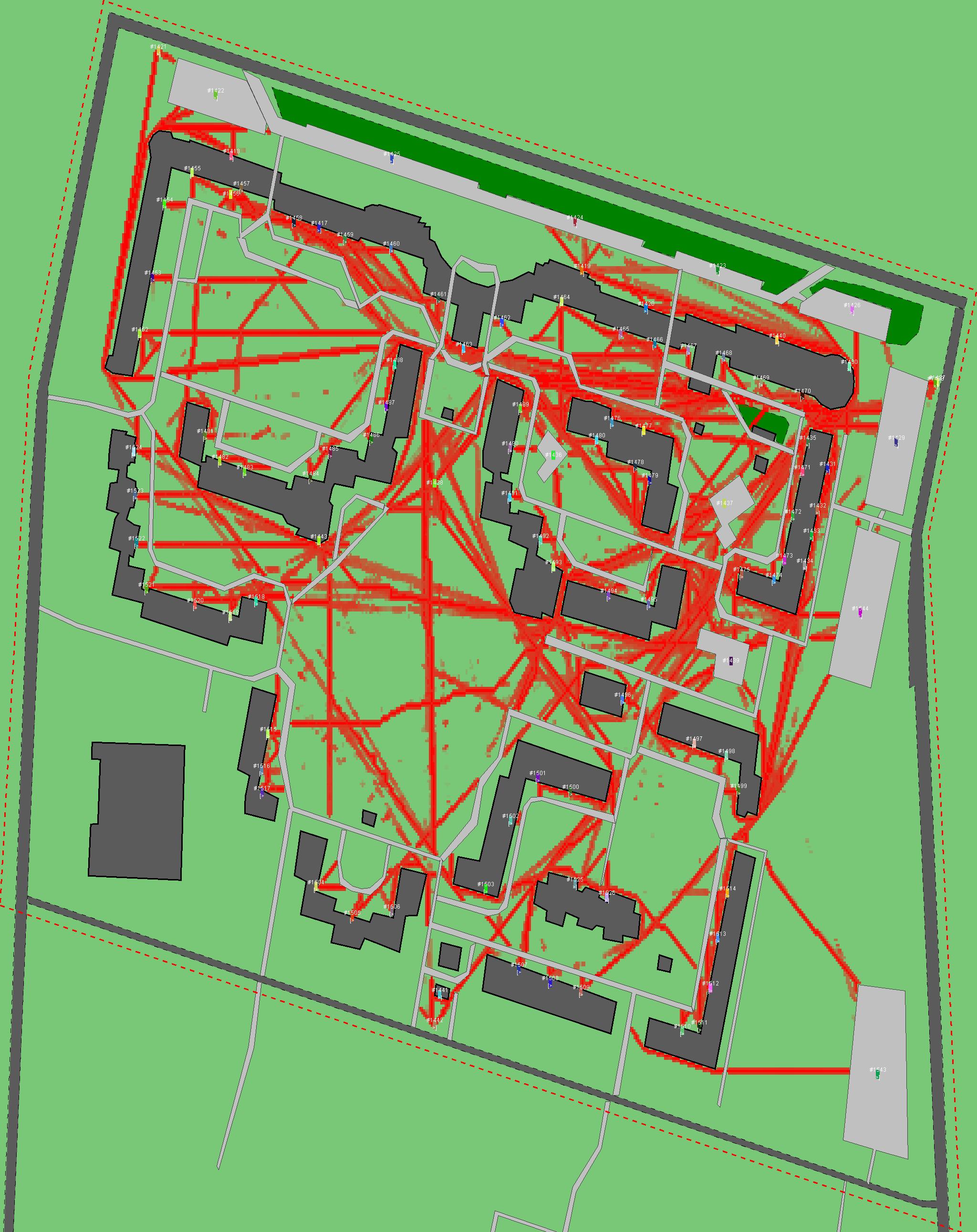 Красным цветом показаны места, где, вероятнее всего, появятся стихийные тропы..