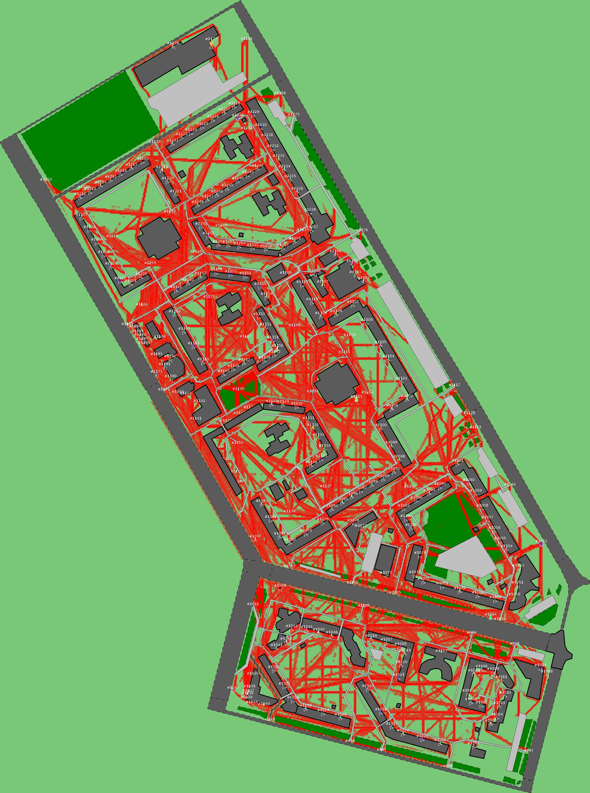 Красным цветом показаны места, где, вероятнее всего, появятся стихийные тропы..