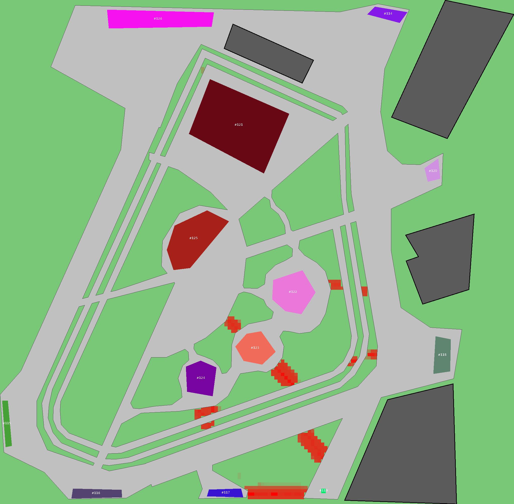 Красным цветом показаны места, где, вероятнее всего, появятся стихийные тропы..