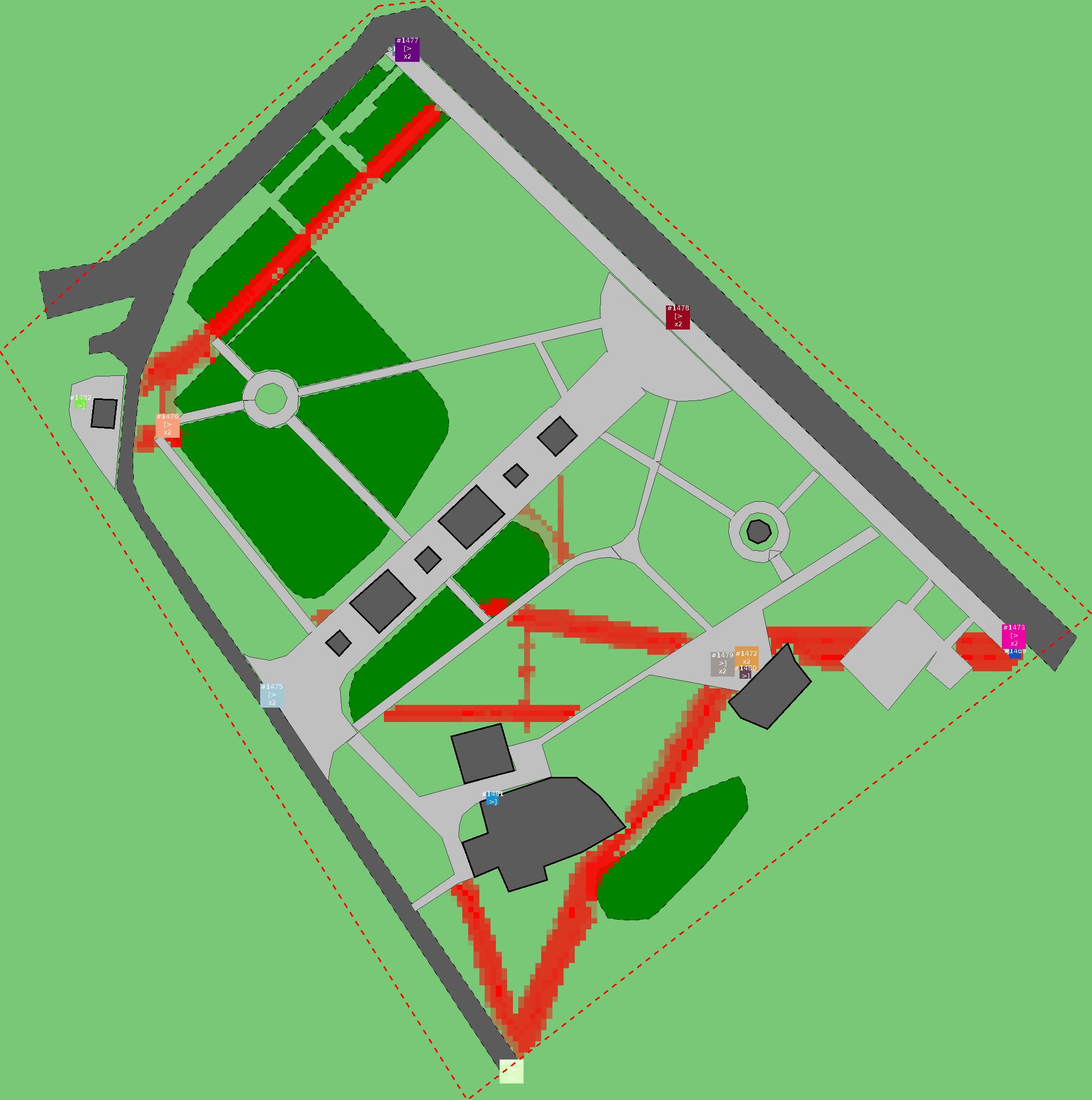 Красным цветом показаны места, где, вероятнее всего, появятся стихийные тропы..