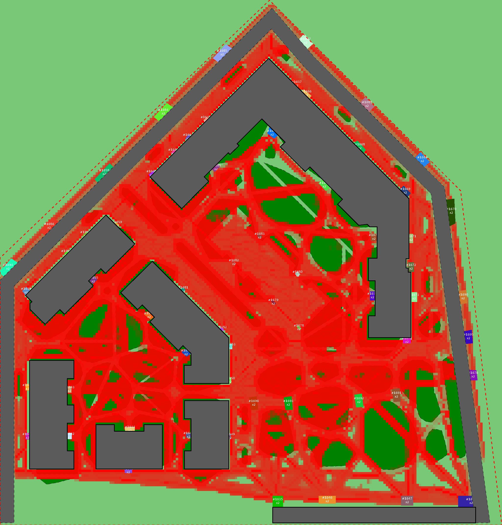 Красным цветом показаны места, где, вероятнее всего, появятся стихийные тропы..