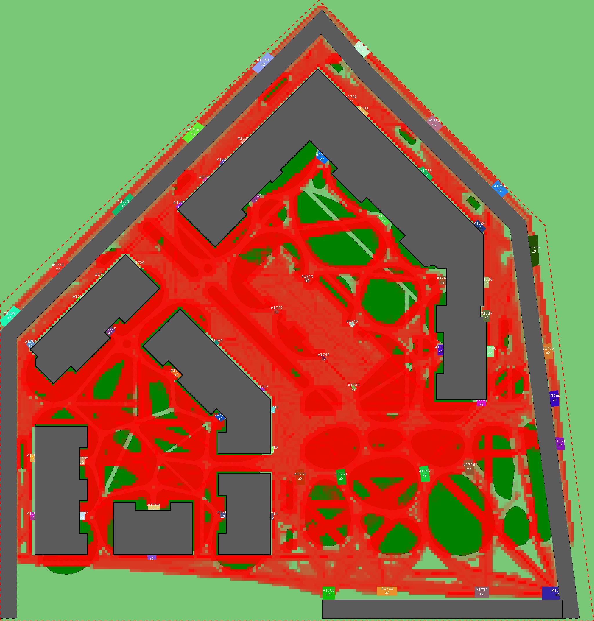 Красным цветом показаны места, где, вероятнее всего, появятся стихийные тропы..