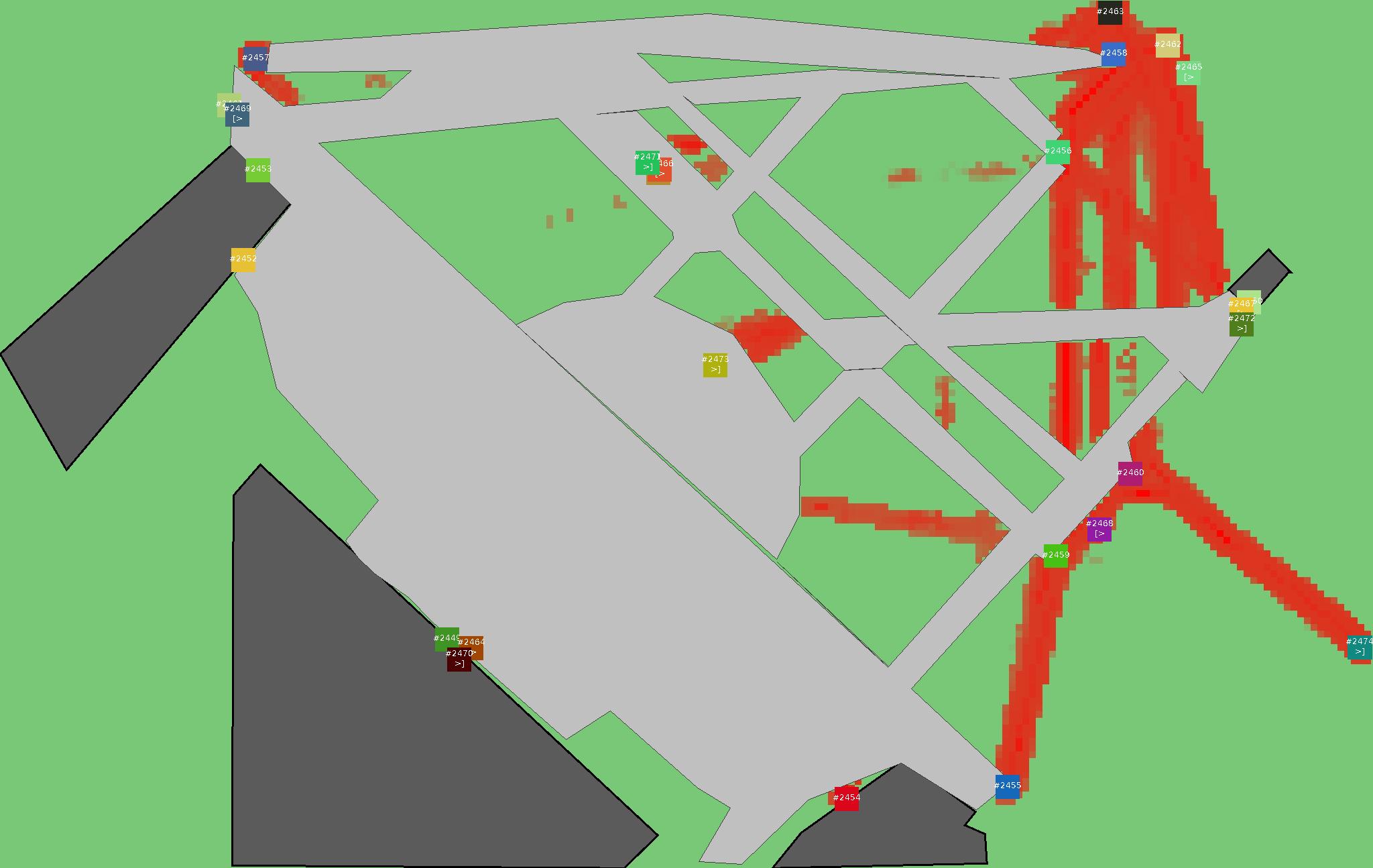 Красным цветом показаны места, где, вероятнее всего, появятся стихийные тропы..