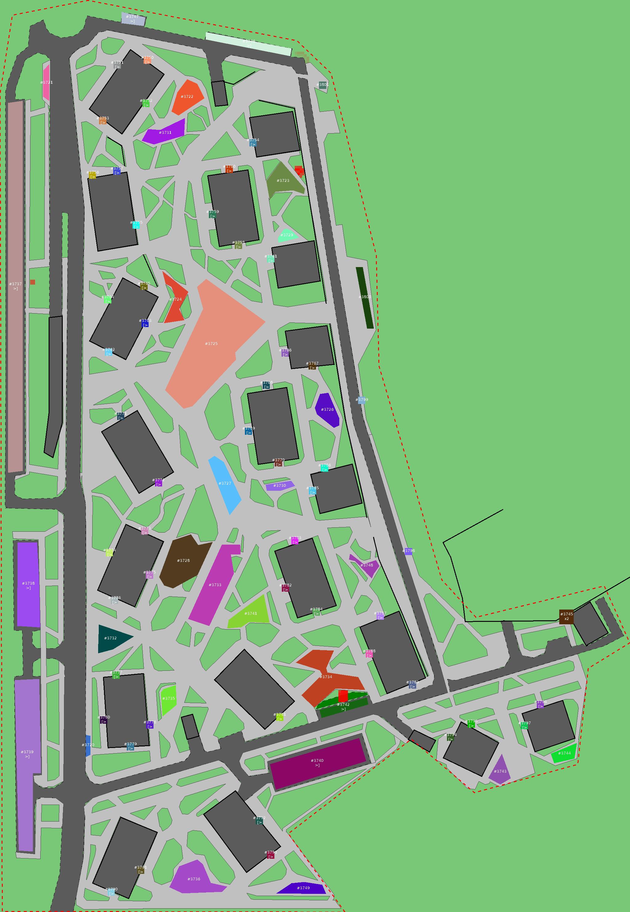 Красным цветом показаны места, где, вероятнее всего, появятся стихийные тропы..