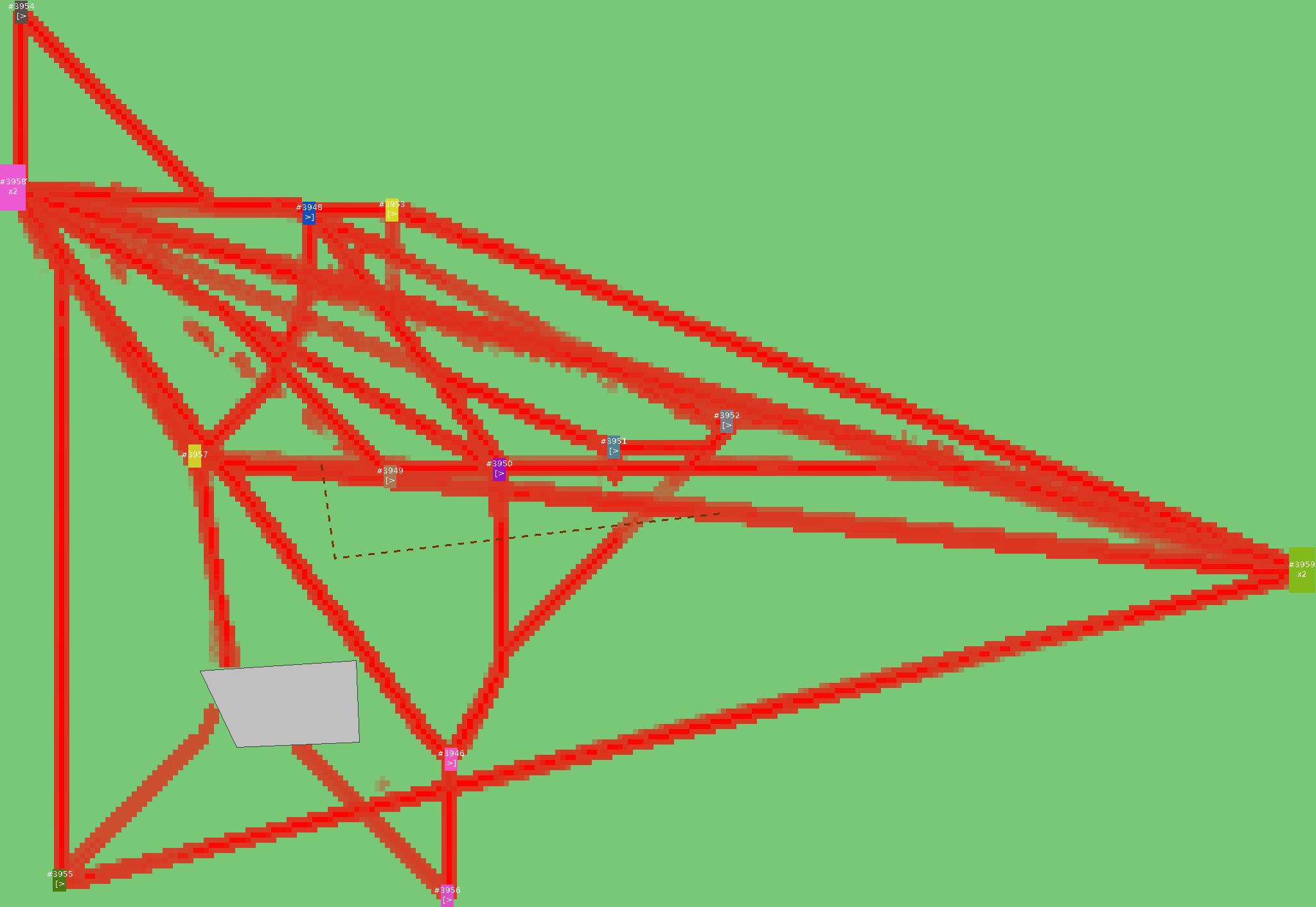Красным цветом показаны места, где, вероятнее всего, появятся стихийные тропы..