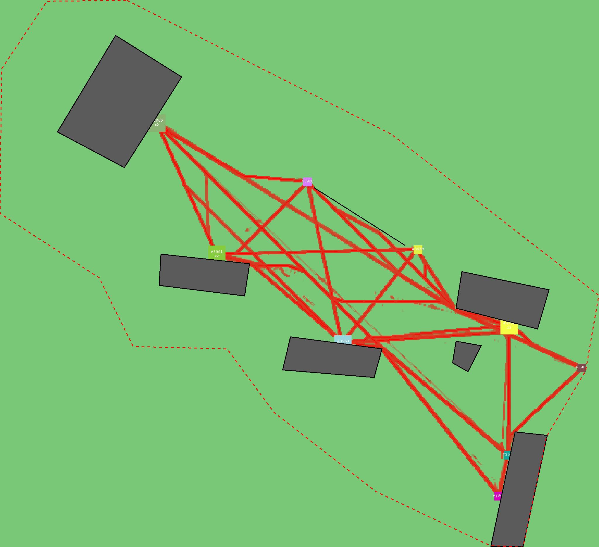 Красным цветом показаны места, где, вероятнее всего, появятся стихийные тропы..