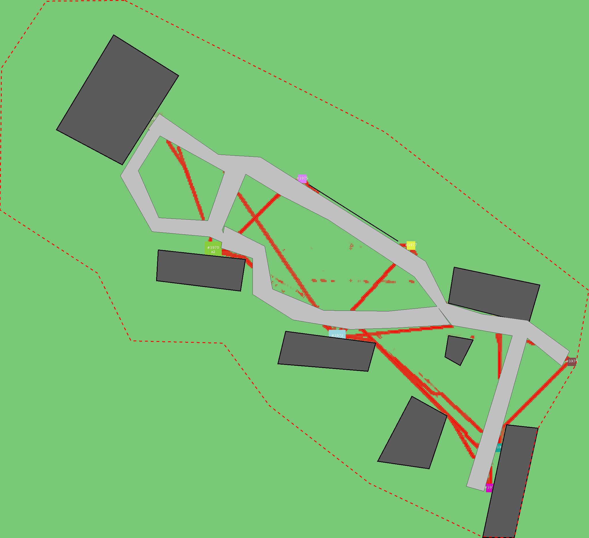 Красным цветом показаны места, где, вероятнее всего, появятся стихийные тропы..