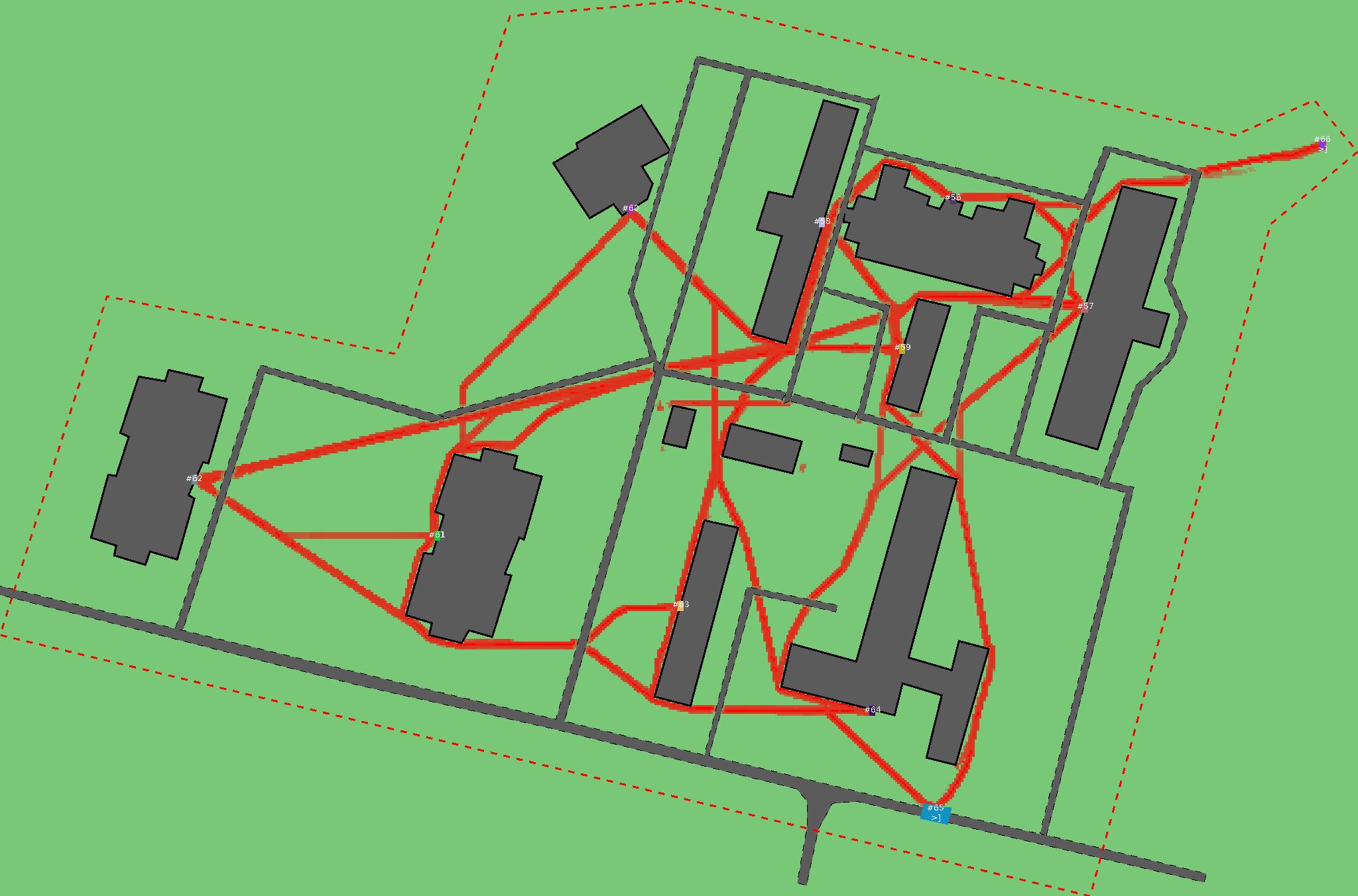 Красным цветом показаны места, где, вероятнее всего, появятся стихийные тропы..