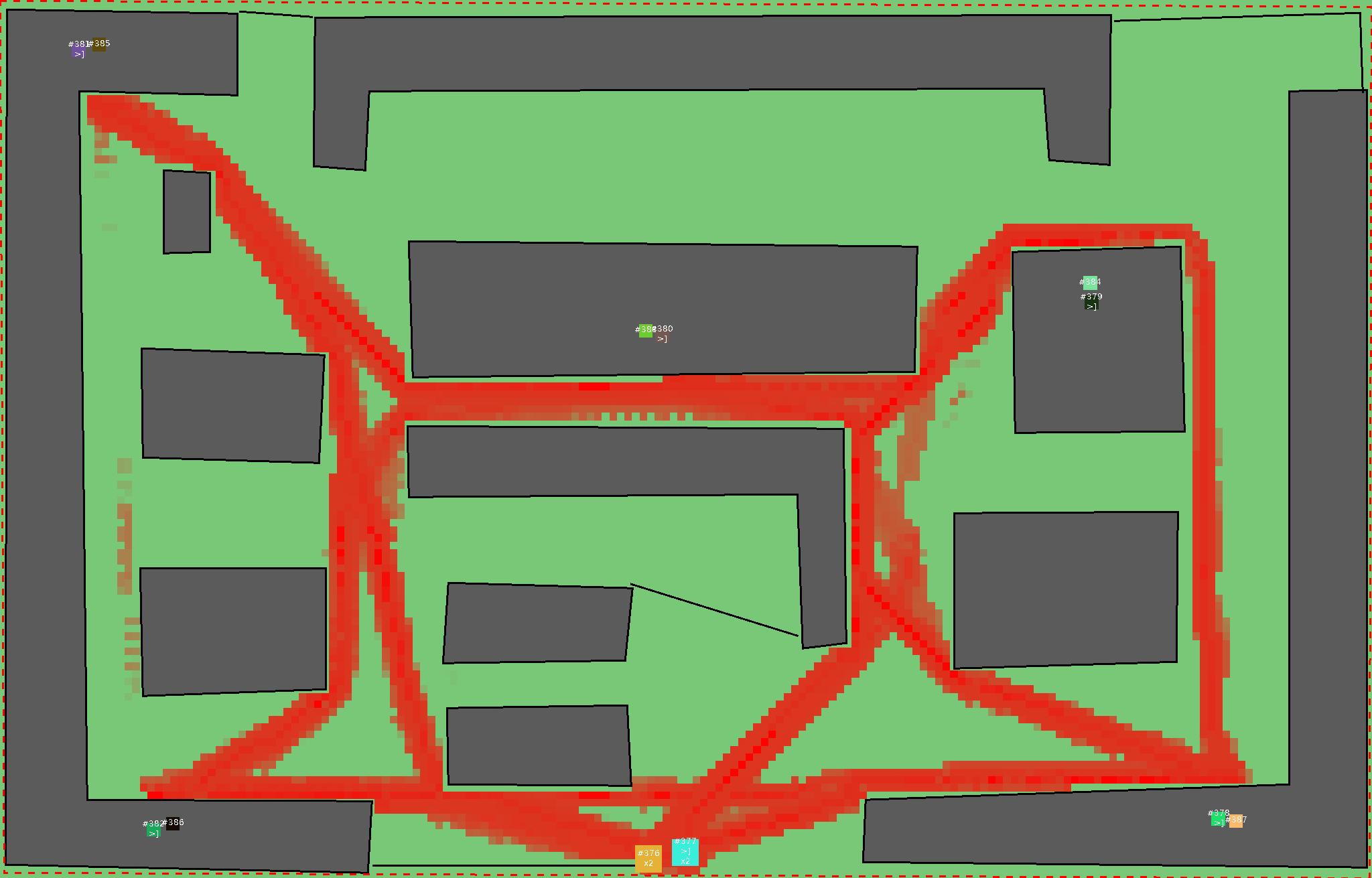 Красным цветом показаны места, где, вероятнее всего, появятся стихийные тропы..