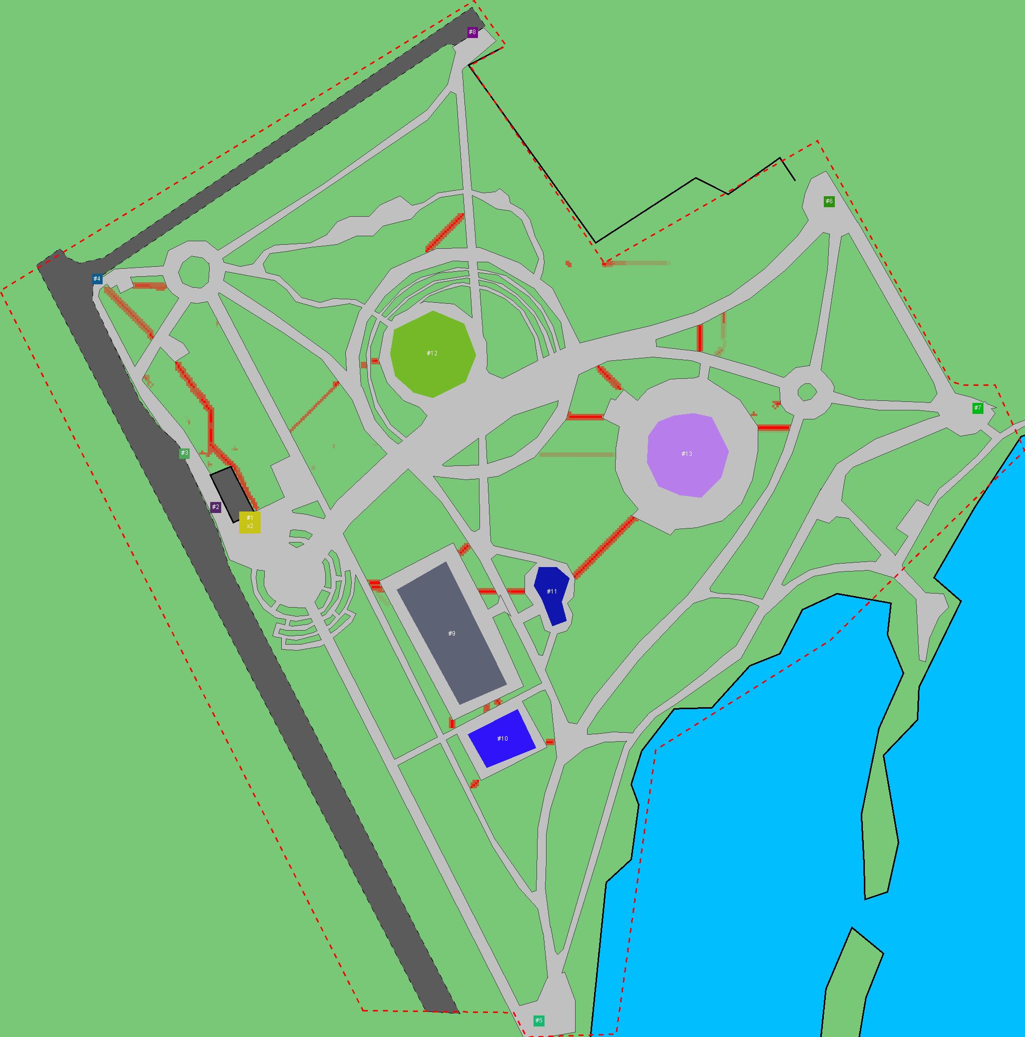 Красным цветом показаны места, где, вероятнее всего, появятся стихийные тропы..