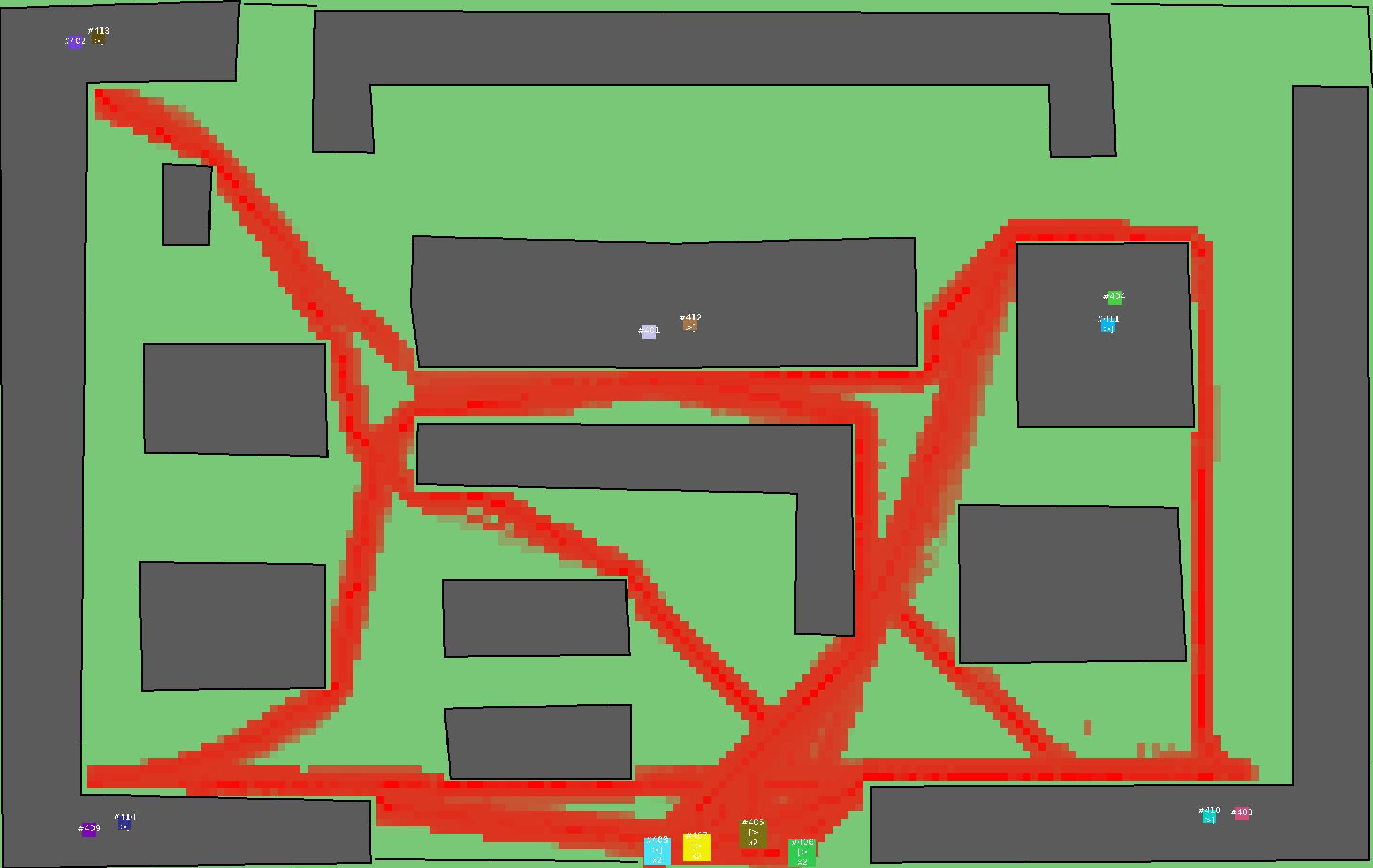 Красным цветом показаны места, где, вероятнее всего, появятся стихийные тропы..