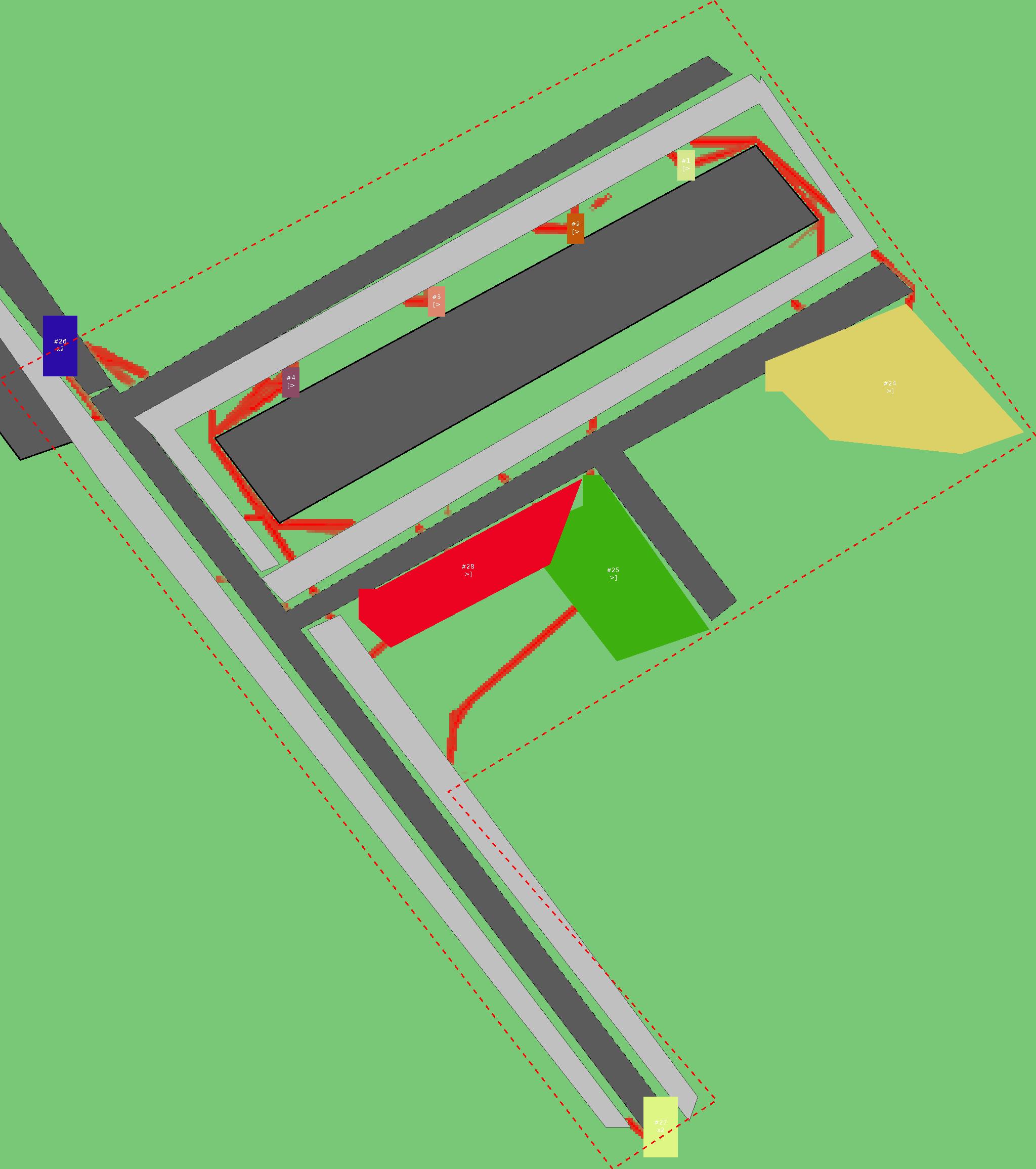 Красным цветом показаны места, где, вероятнее всего, появятся стихийные тропы..