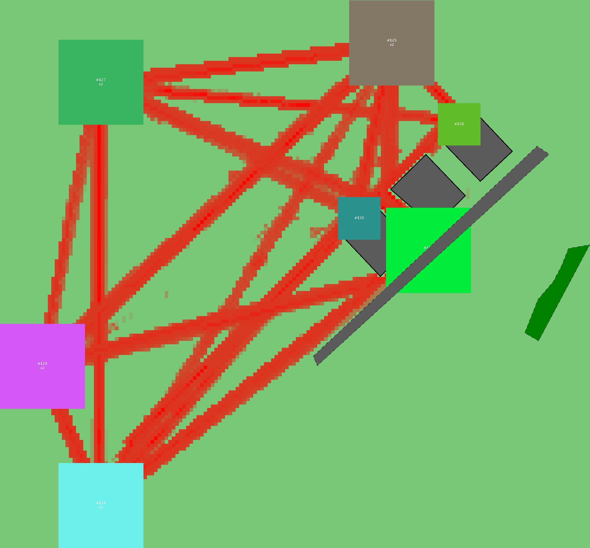 Красным цветом показаны места, где, вероятнее всего, появятся стихийные тропы..