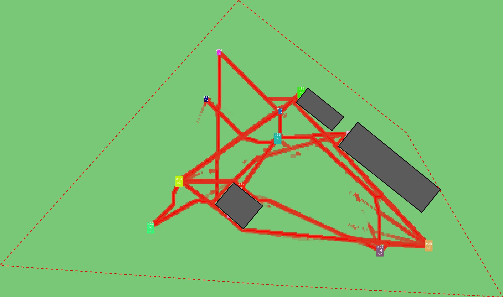 Красным цветом показаны места, где, вероятнее всего, появятся стихийные тропы..
