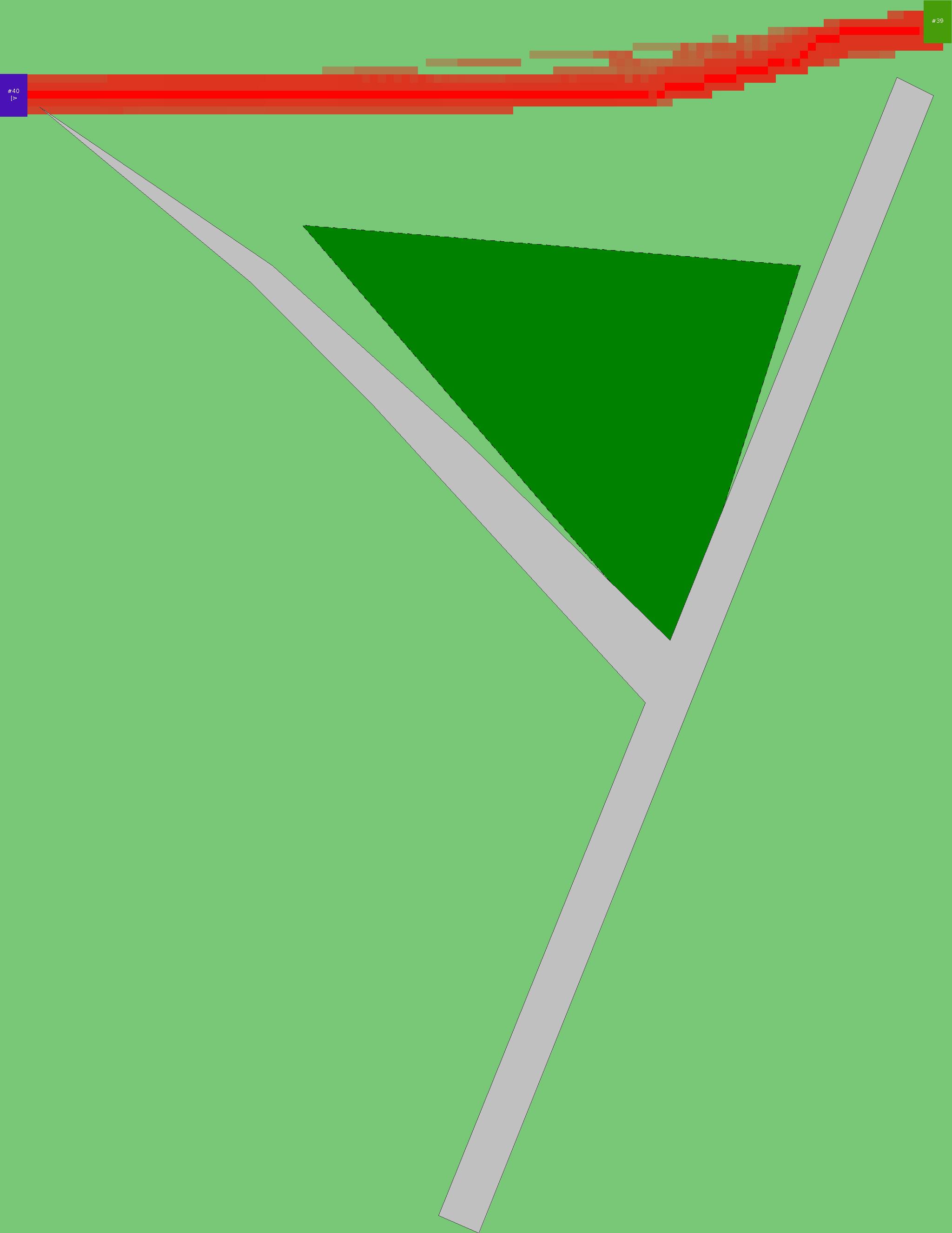 Красным цветом показаны места, где, вероятнее всего, появятся стихийные тропы..