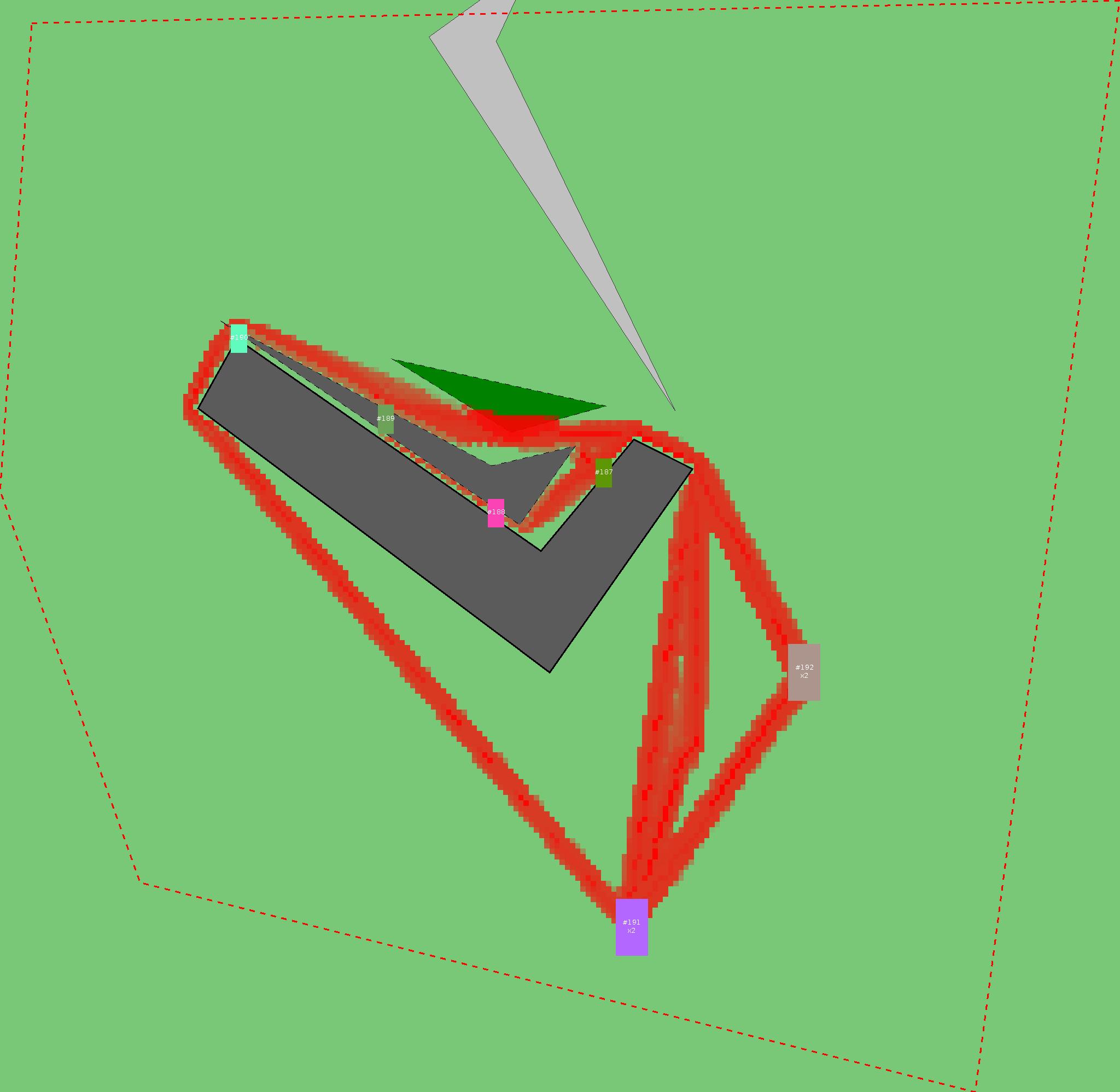 Красным цветом показаны места, где, вероятнее всего, появятся стихийные тропы..