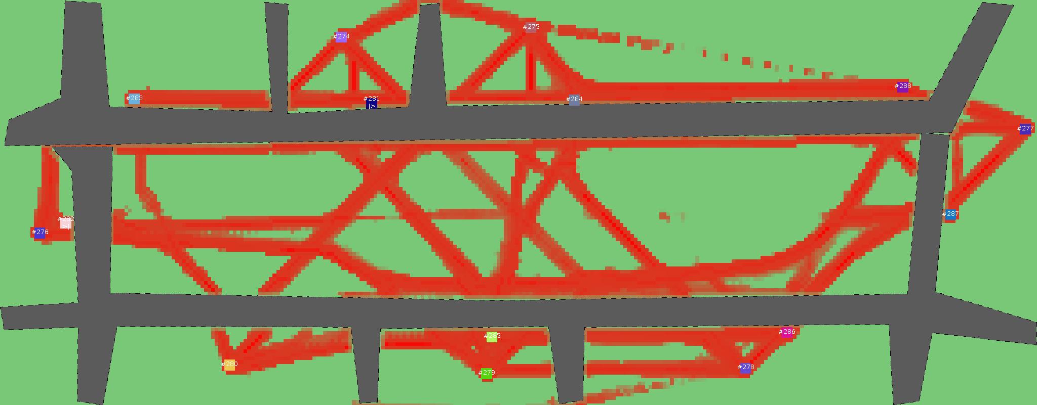 Красным цветом показаны места, где, вероятнее всего, появятся стихийные тропы..
