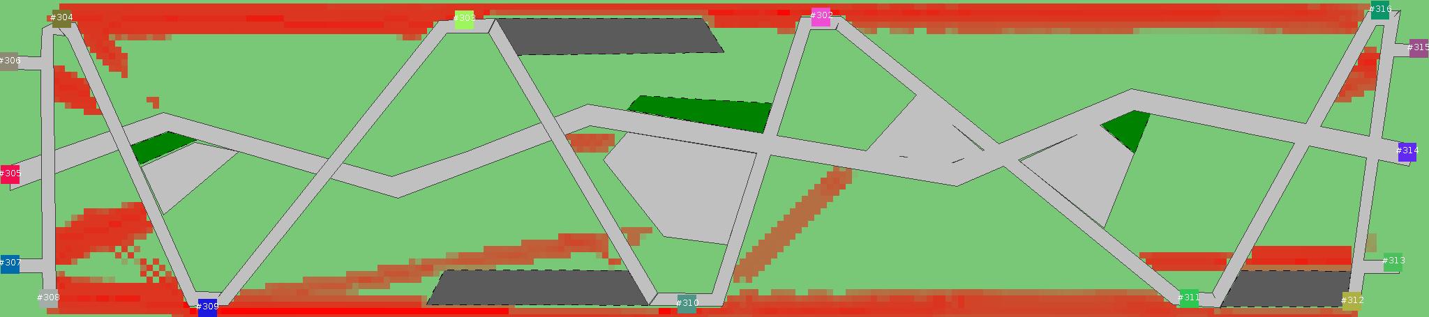 Красным цветом показаны места, где, вероятнее всего, появятся стихийные тропы..